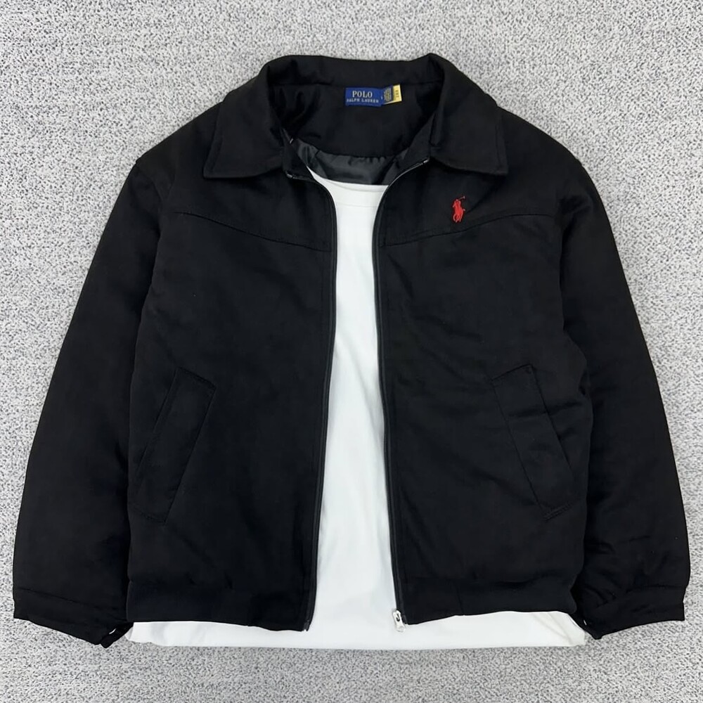 폴로 블랙 크롭 스웨이드 패딩자켓