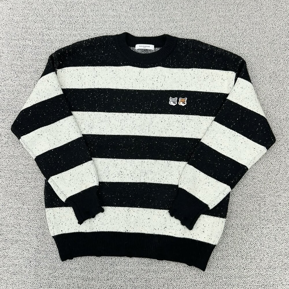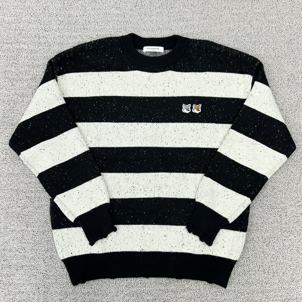 키츠네 더블헤드 블랙 단가라 니트
