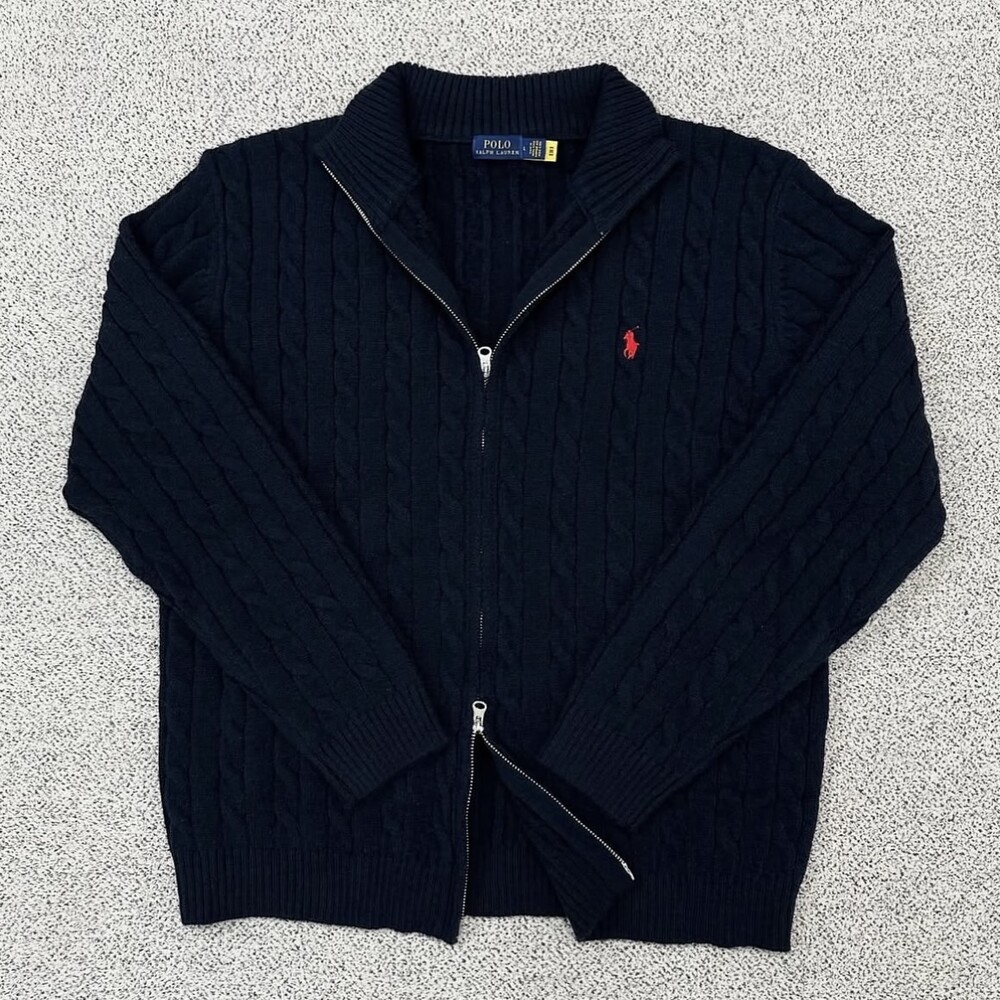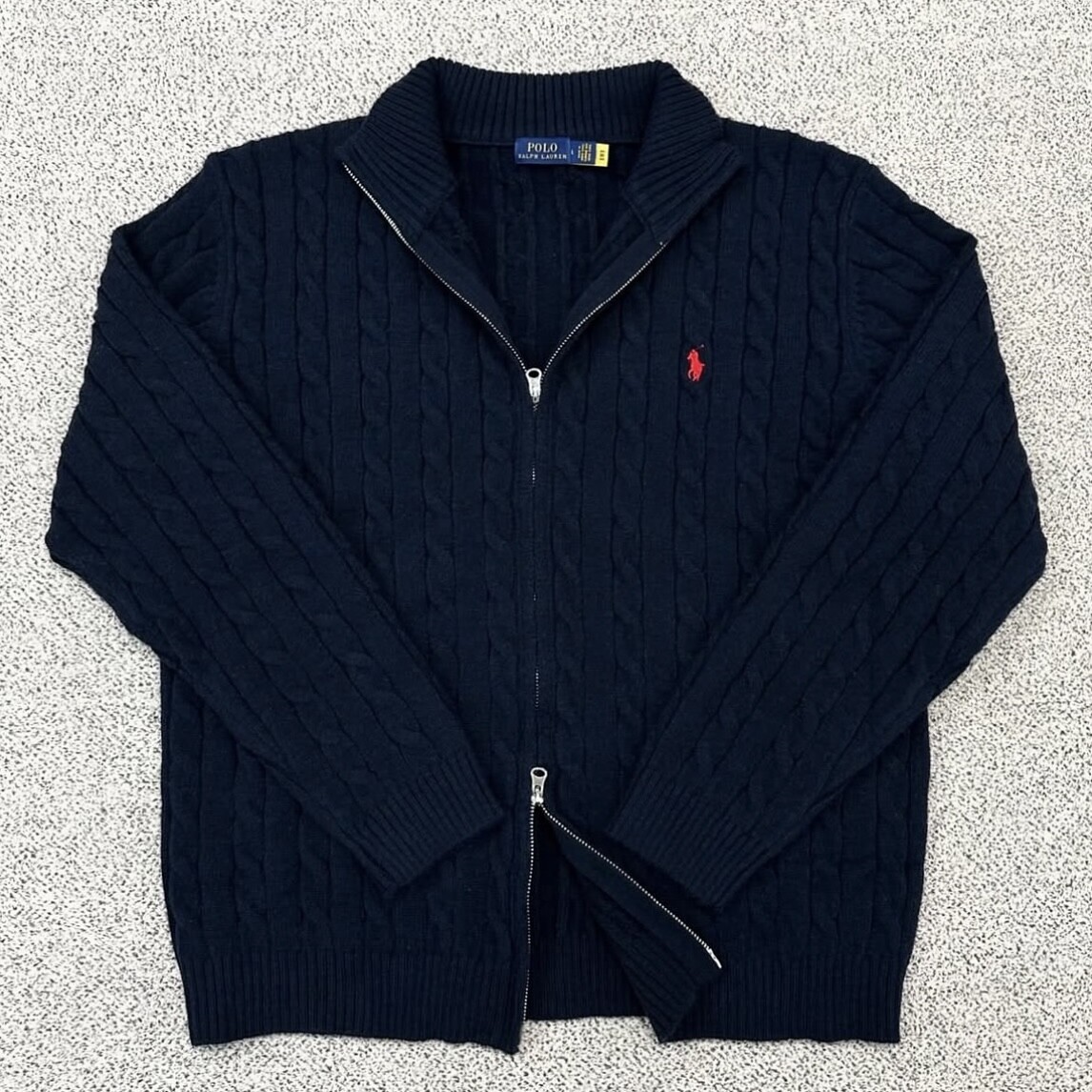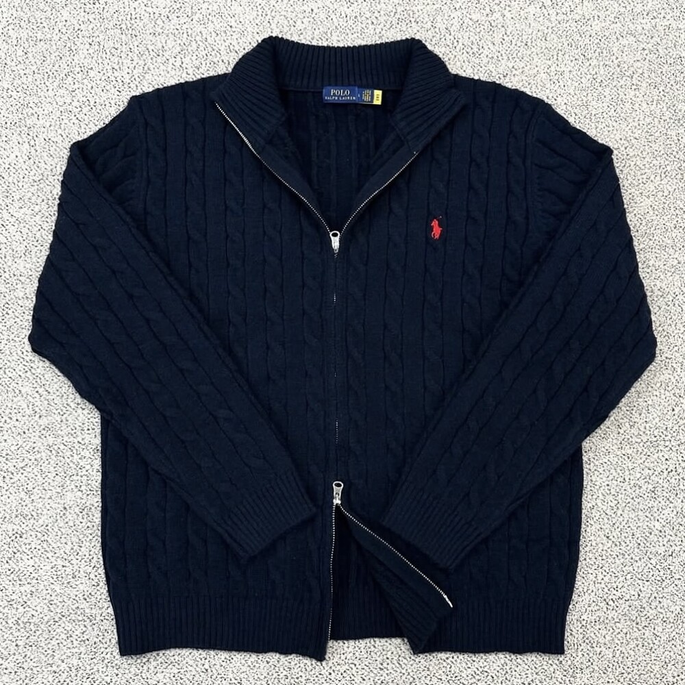 폴로 네이비 케이블 풀집업 니트