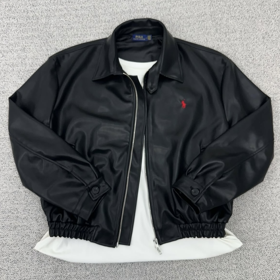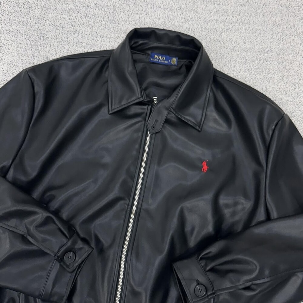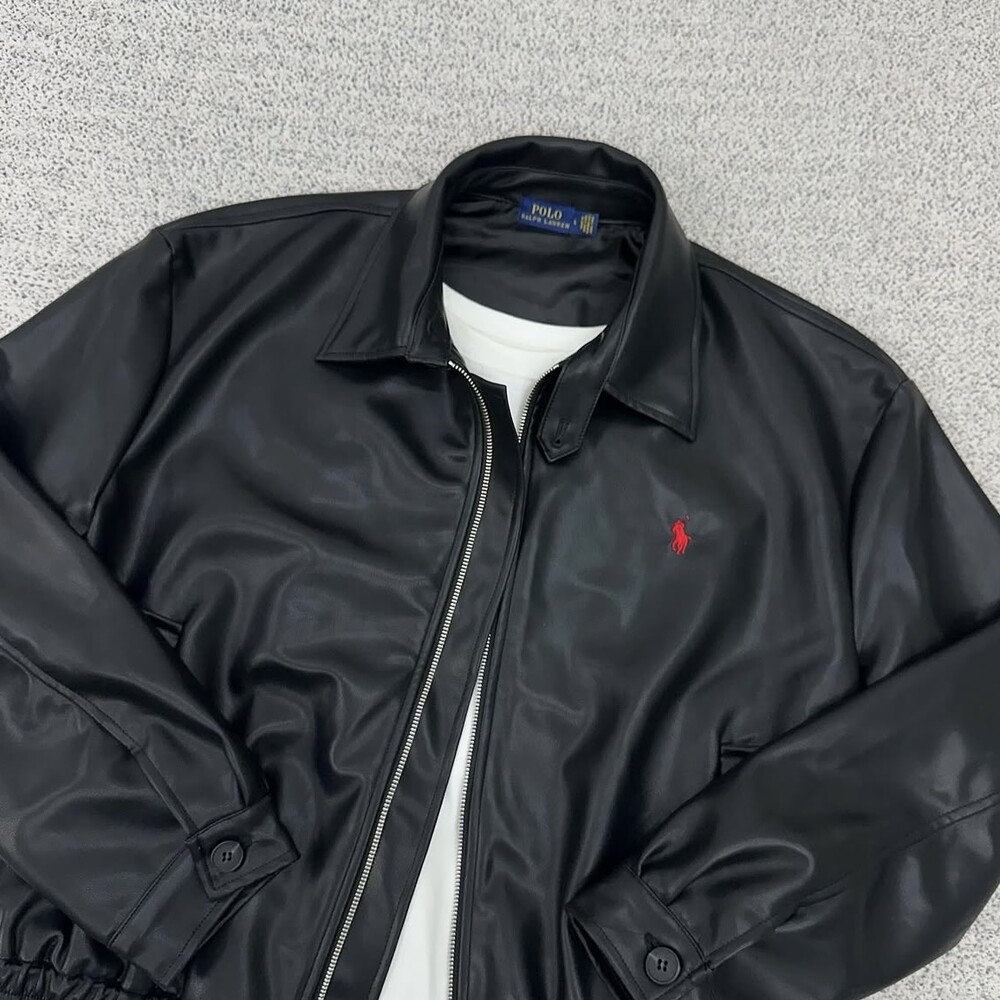 폴로 블랙 크롭 블렌드 레더자켓