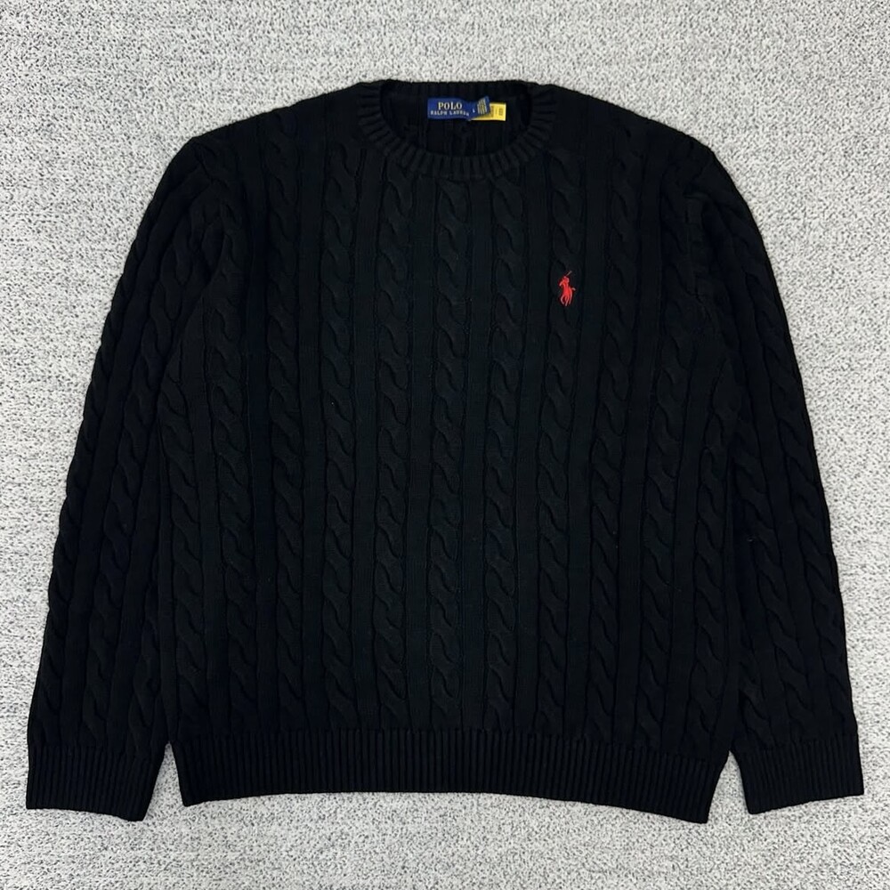 폴로 시그니처 블랙 케이블 니트