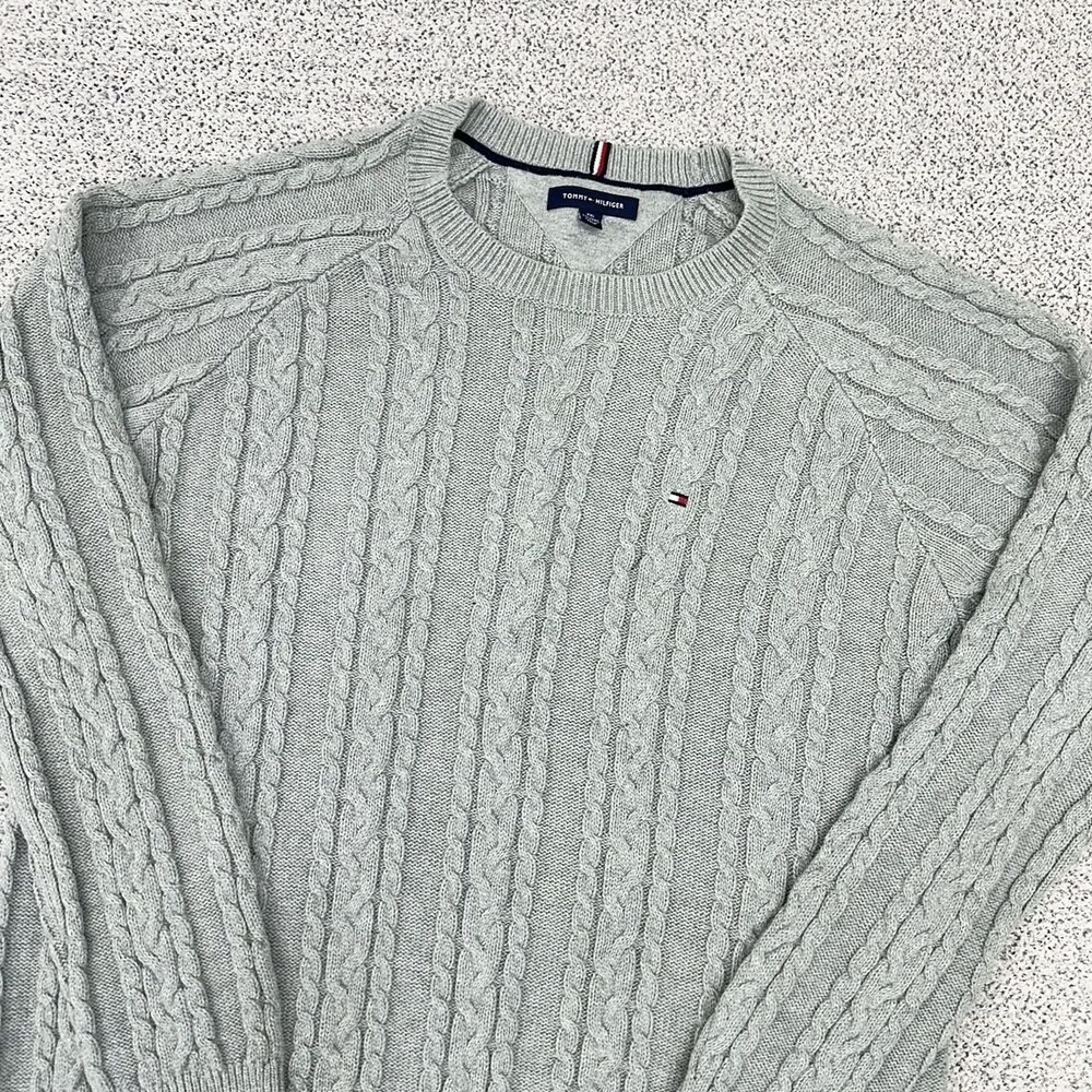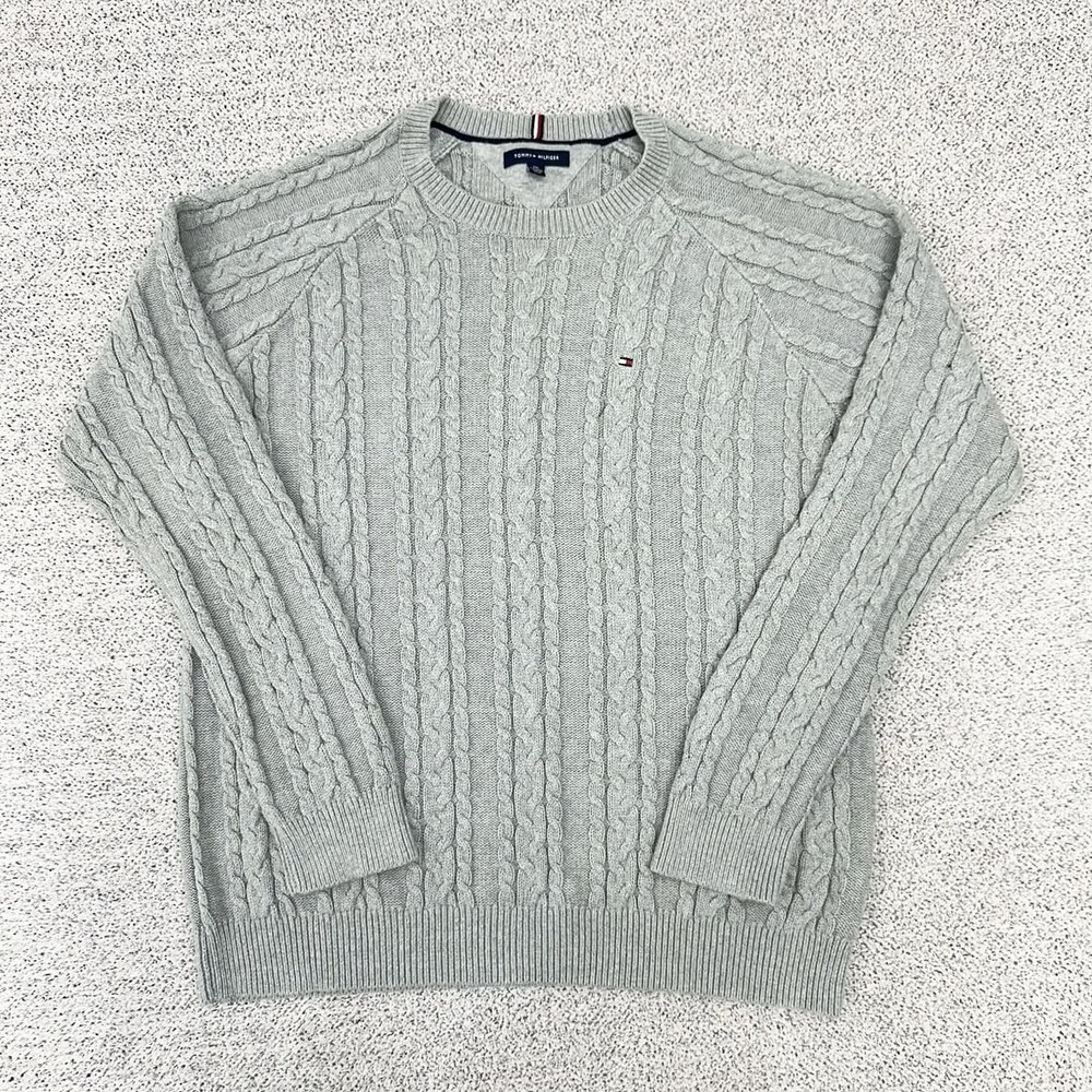 타미 그레이 케이블 라운드 니트