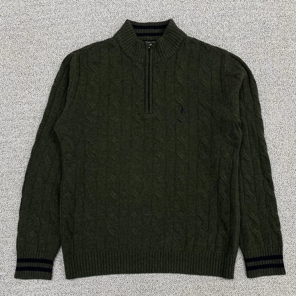 빈폴 카키 반집업 니트