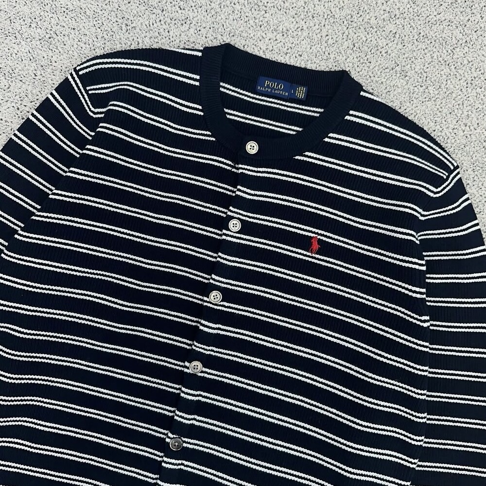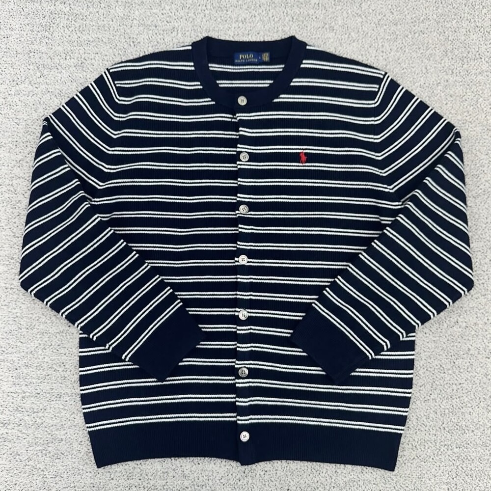 폴로 네이비 단가라 라운드 가디건