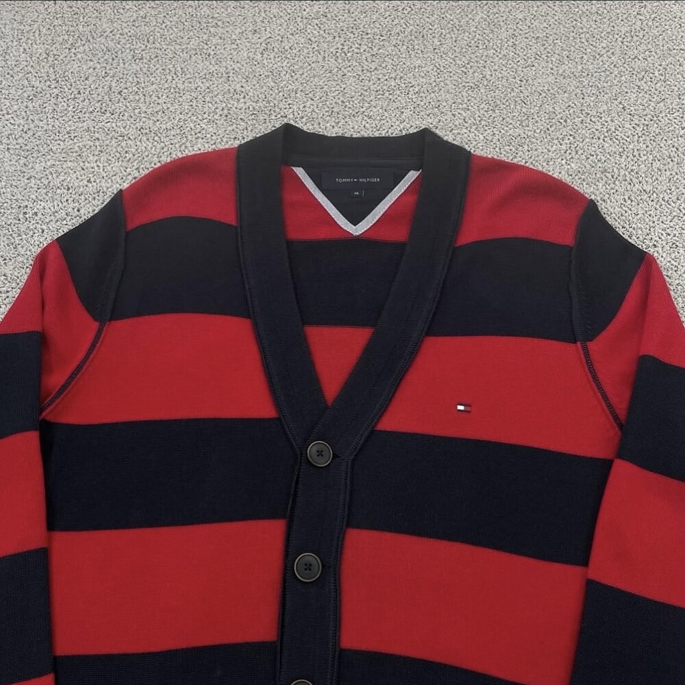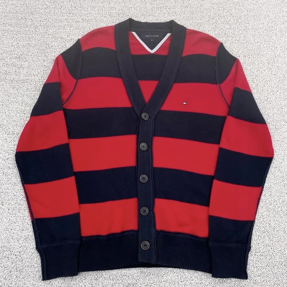 타미 레드 단가라 브이넥 가디건