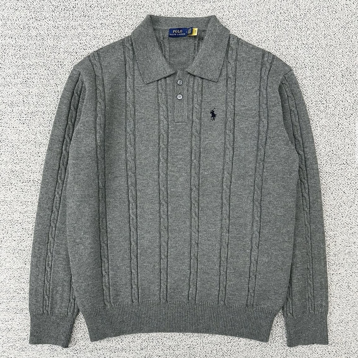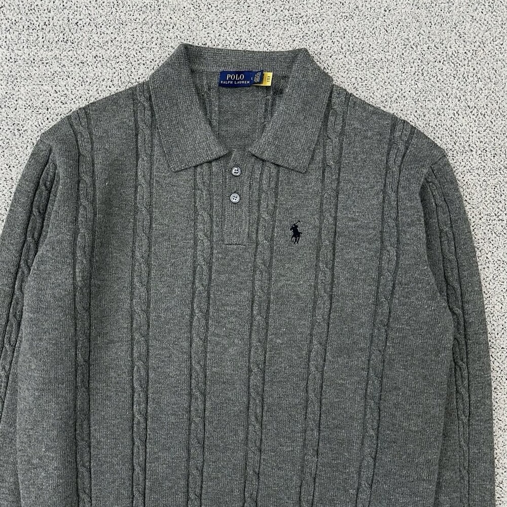 폴로 차콜 꽈배기 레드포니 버튼 니트