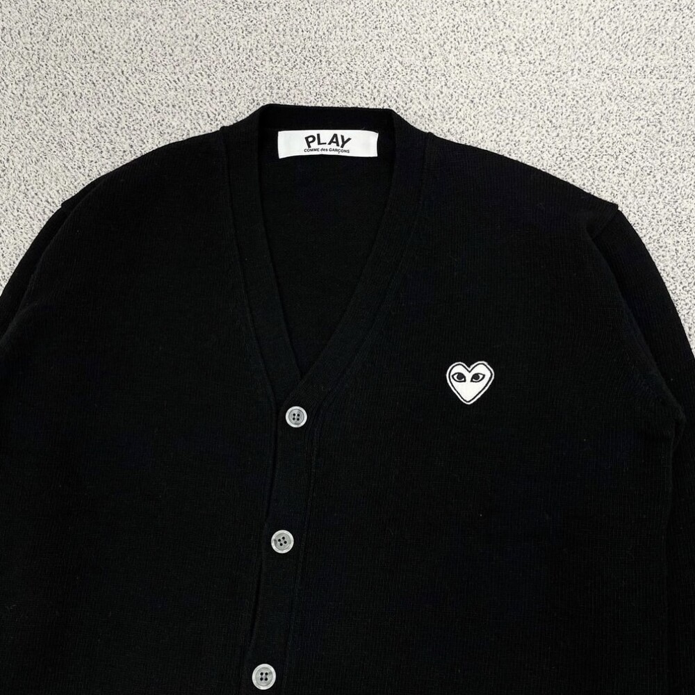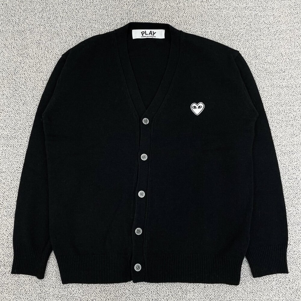 꼼데 블랙 화이트와펜 브이넥 가디건