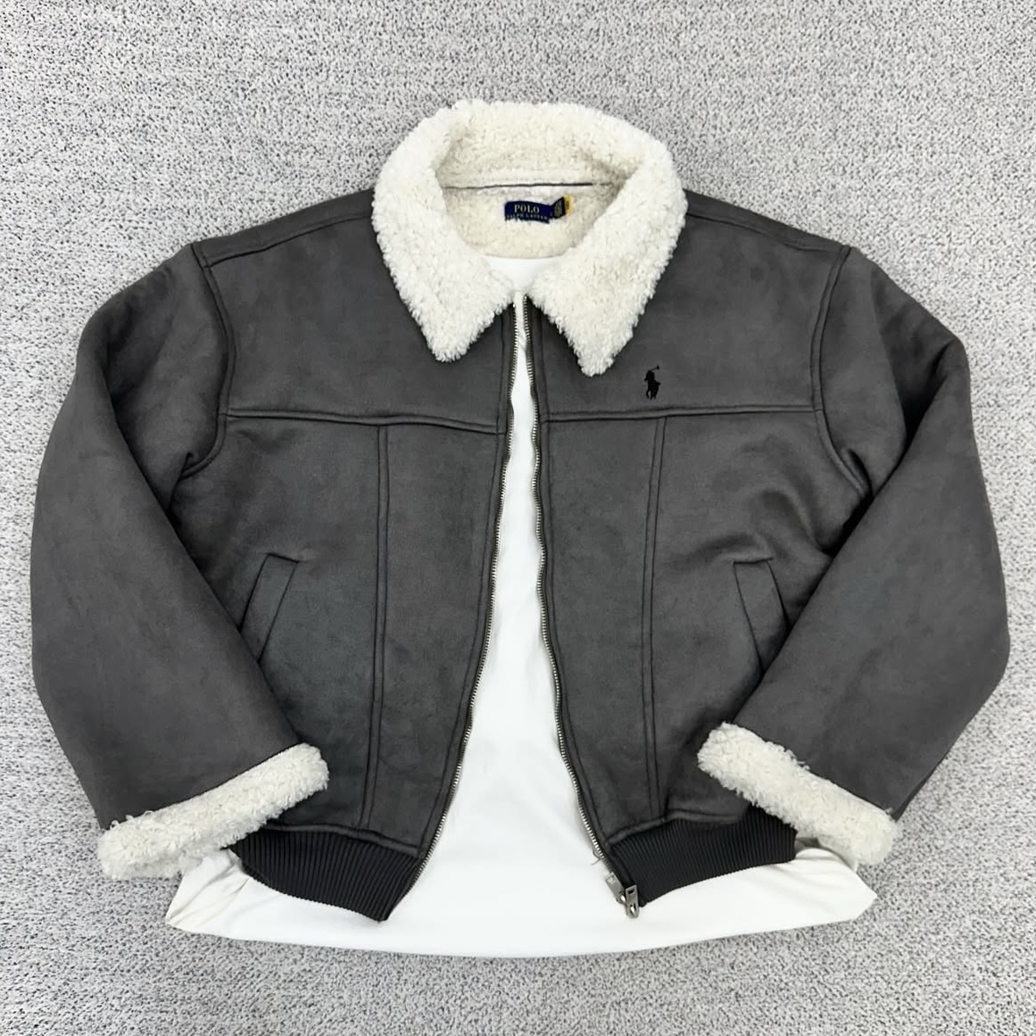 폴로 차콜 스웨이드 양털 자켓