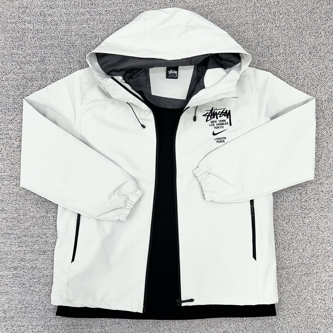 스투시X나이키 화이트 후드 바람막이