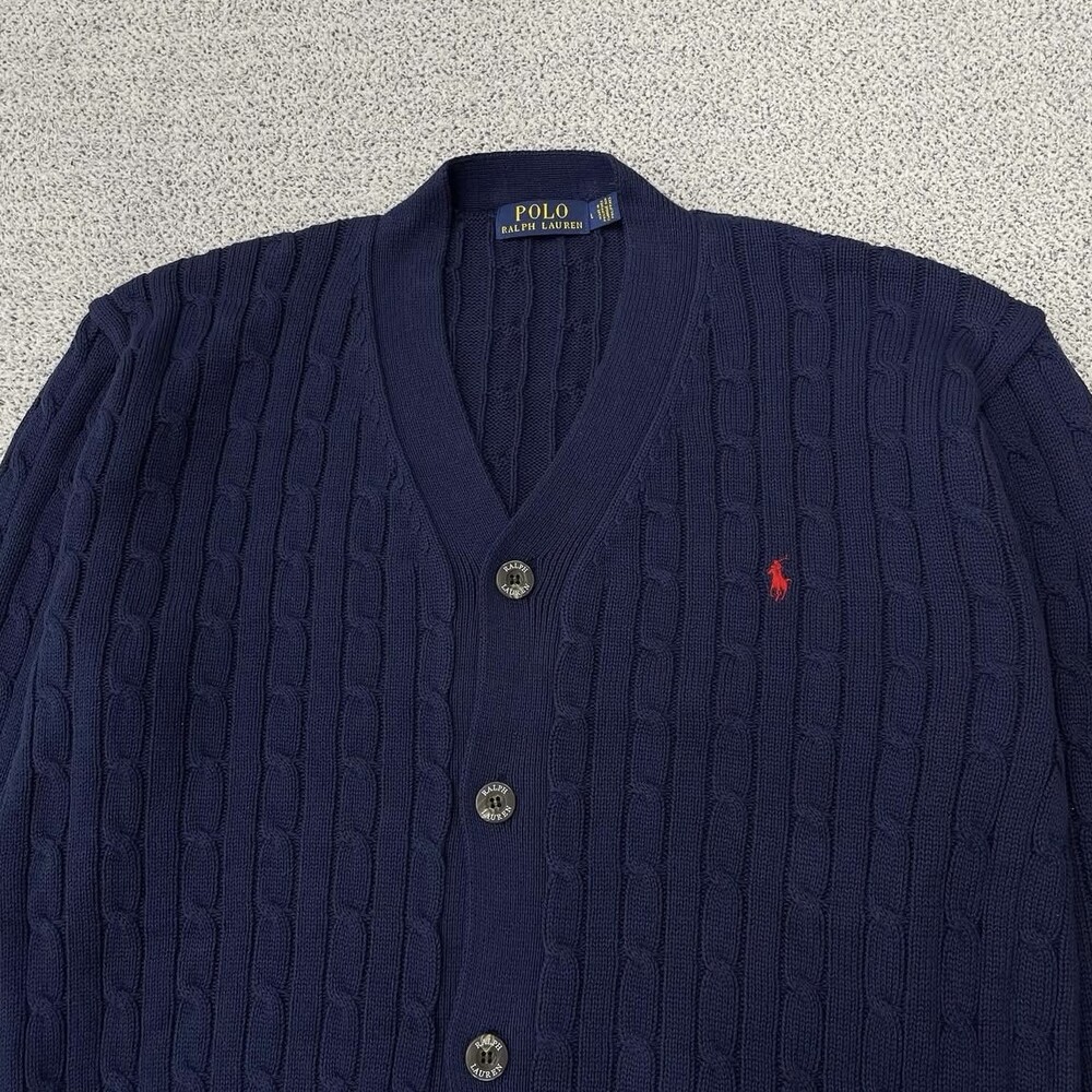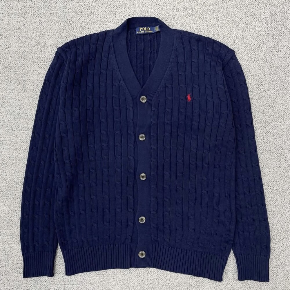 폴로 네이비 케이블 브이넥 가디건