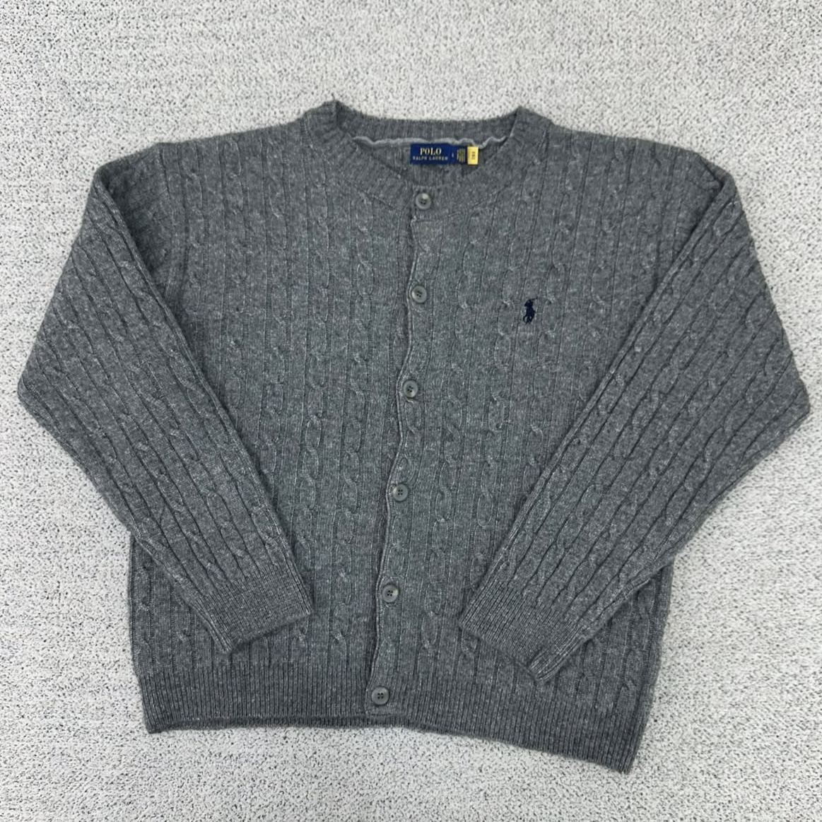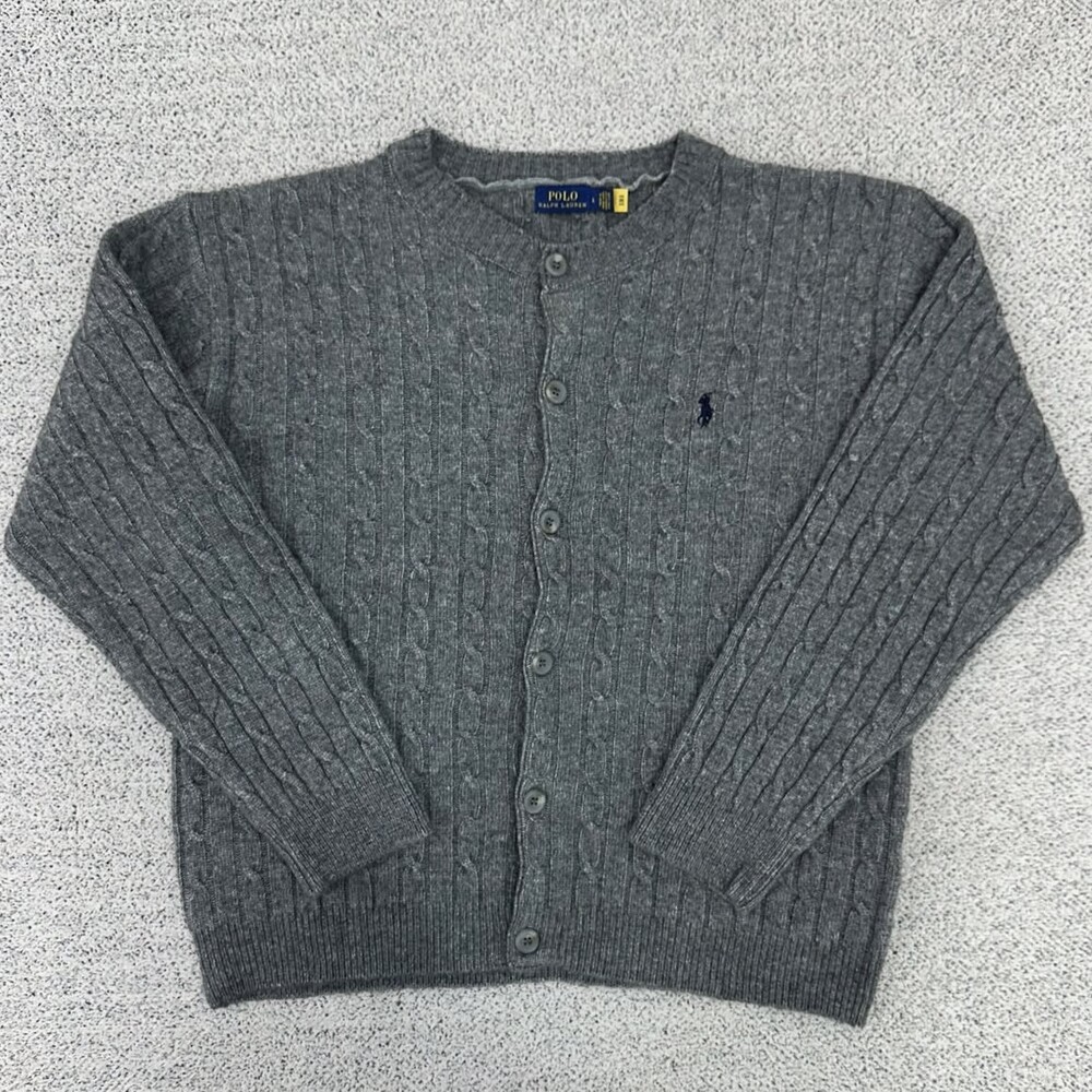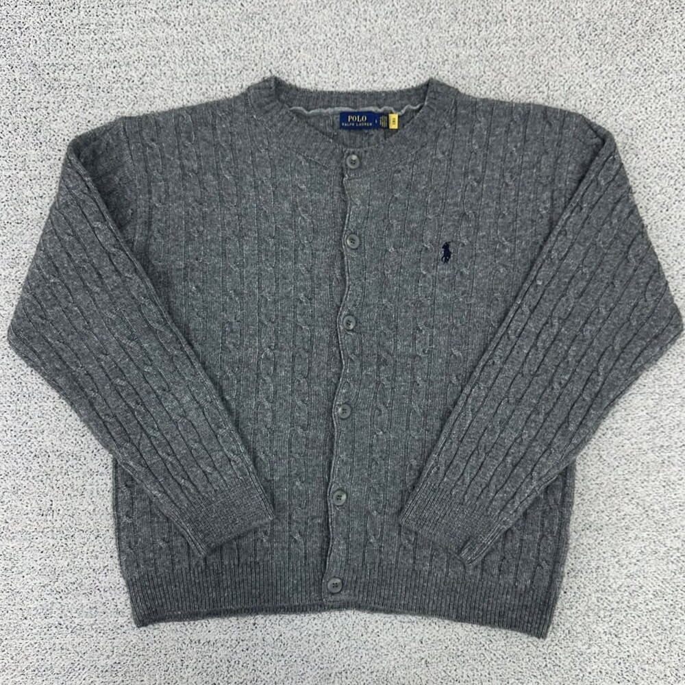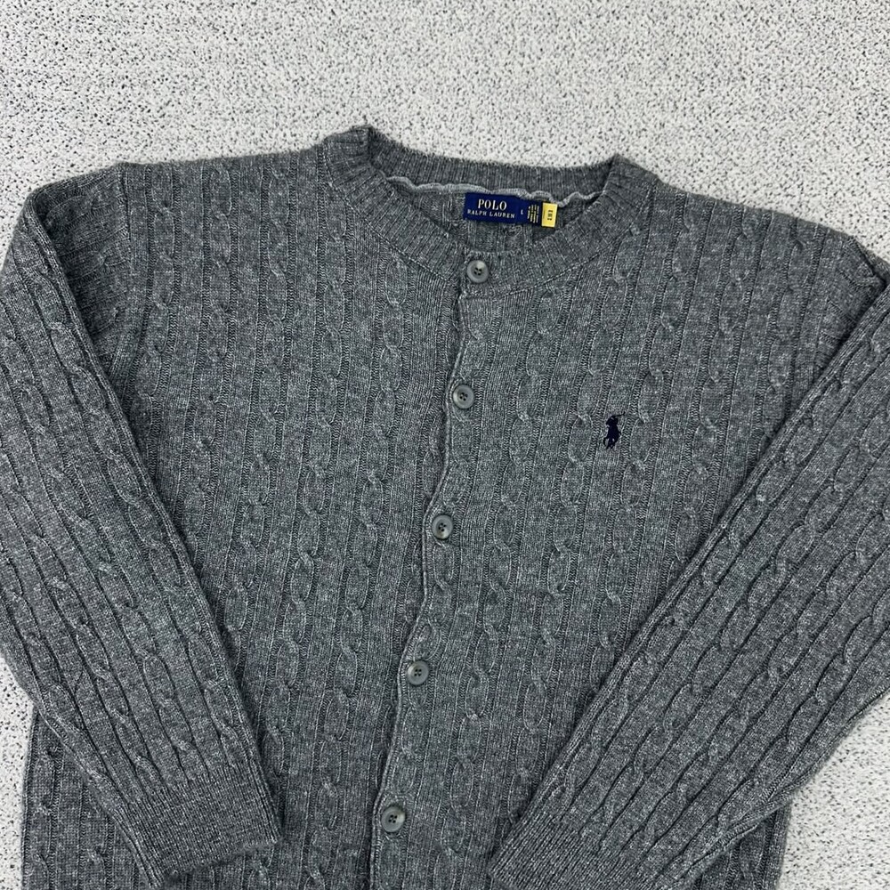 폴로 차콜 울 케이블 크롭 가디건