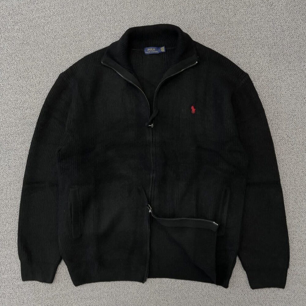 폴로 블랙 포켓 투웨이 집업니트