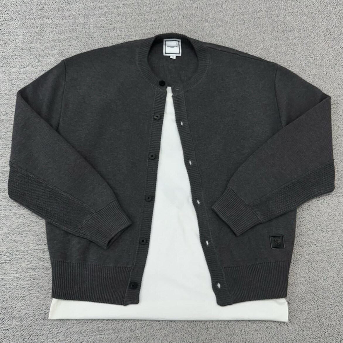 우영미 차콜 라운드 미니멀 가디건