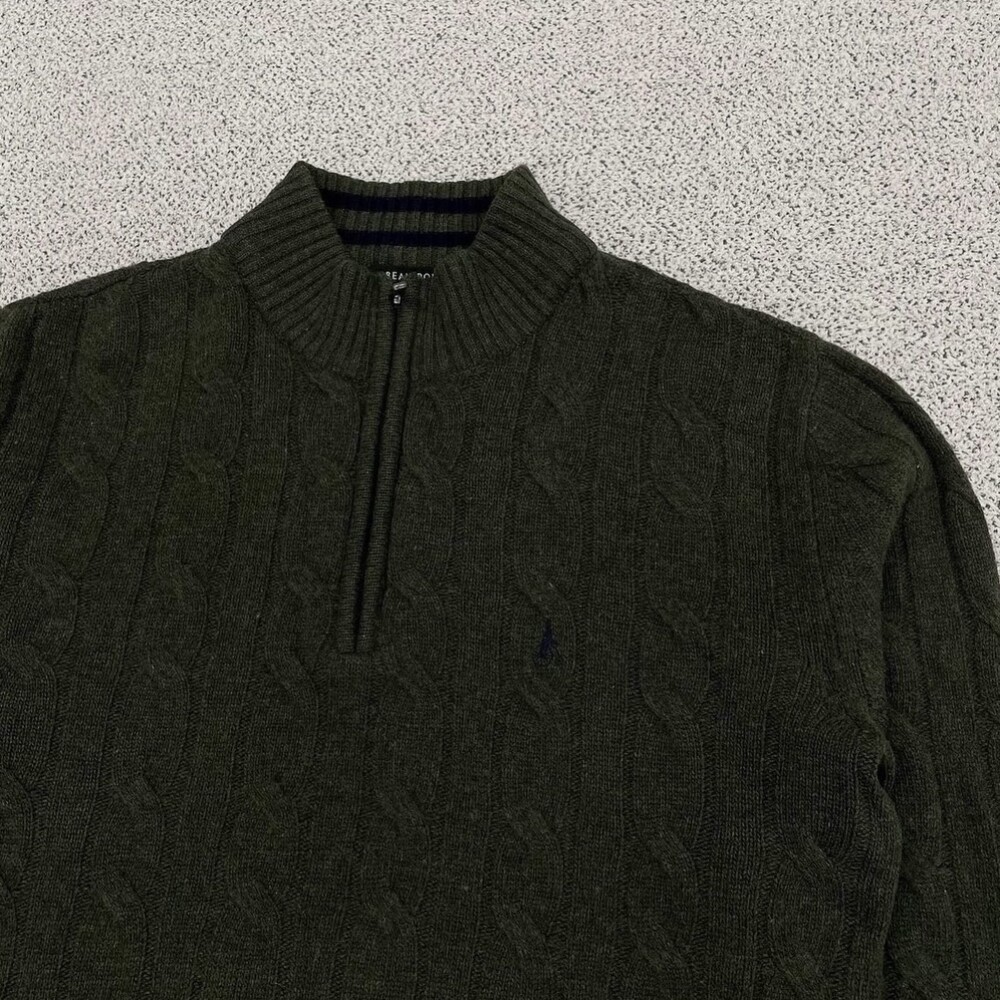 빈폴 카키 반집업 니트