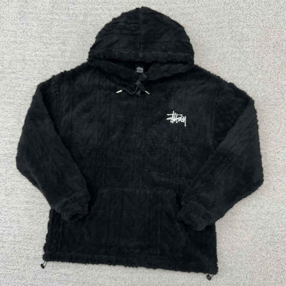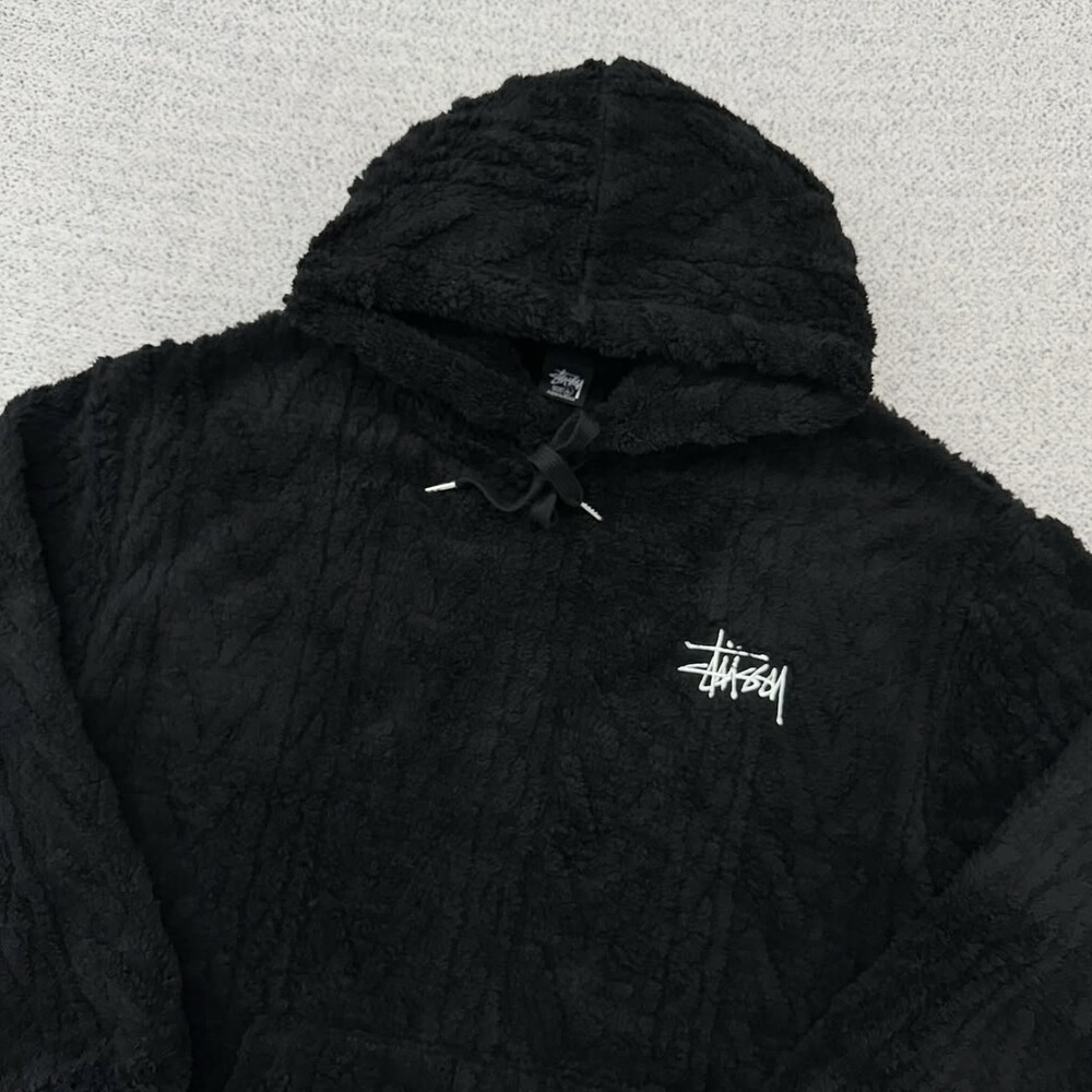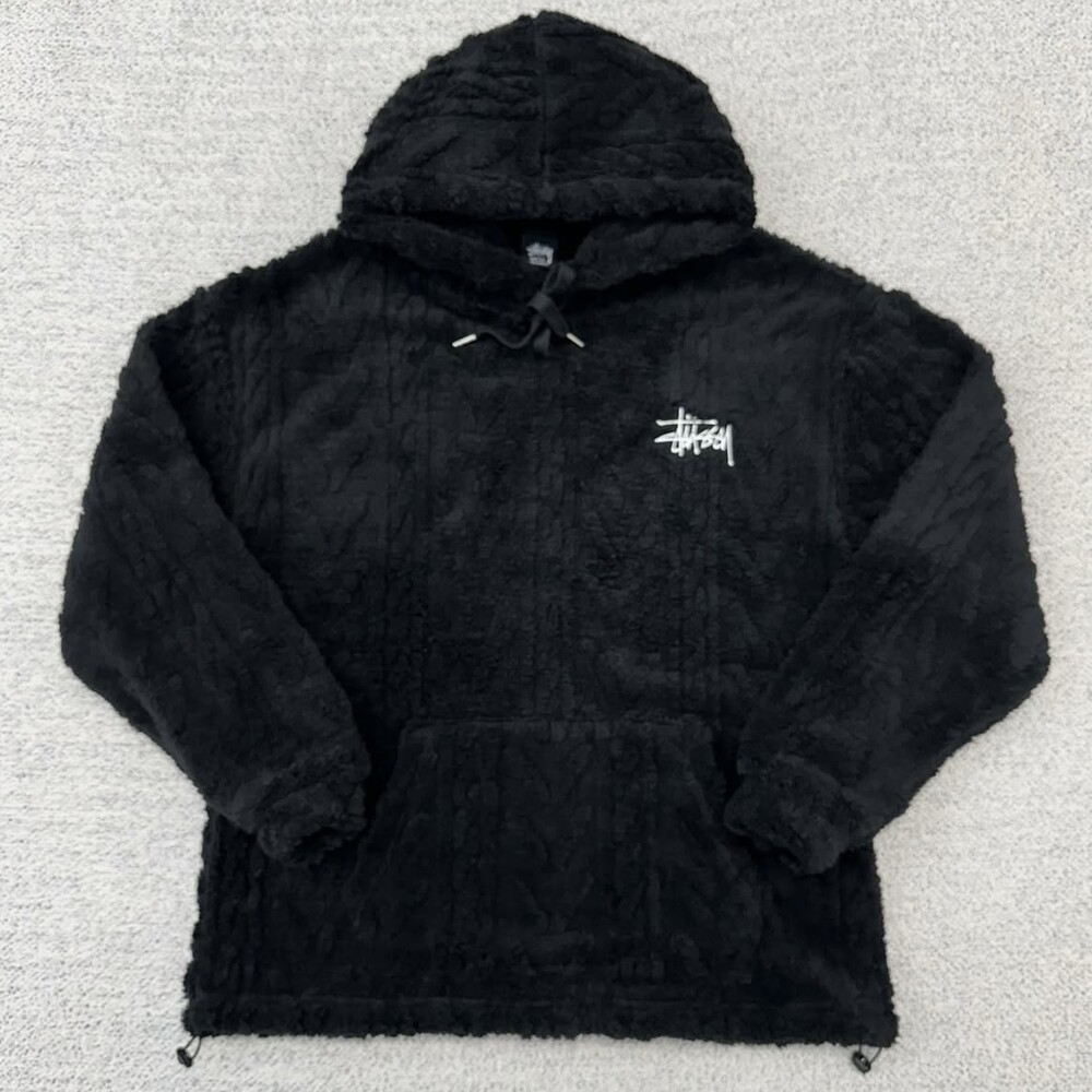 스투시 블랙 케이블 양털 후드