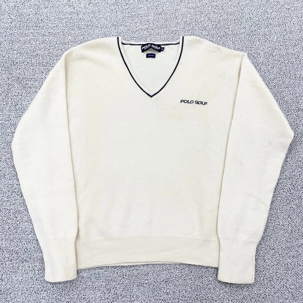 폴로 아이보리 골프 브이넥 니트
