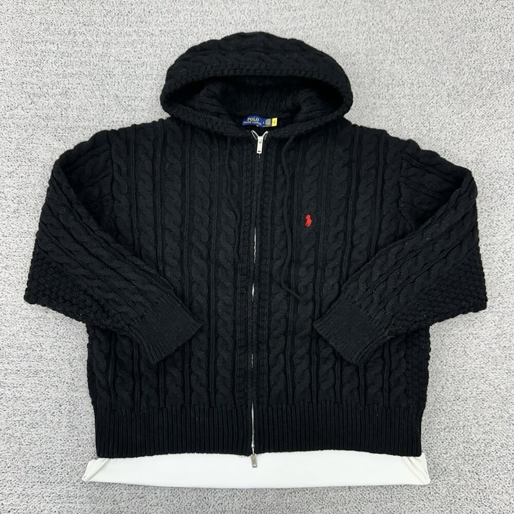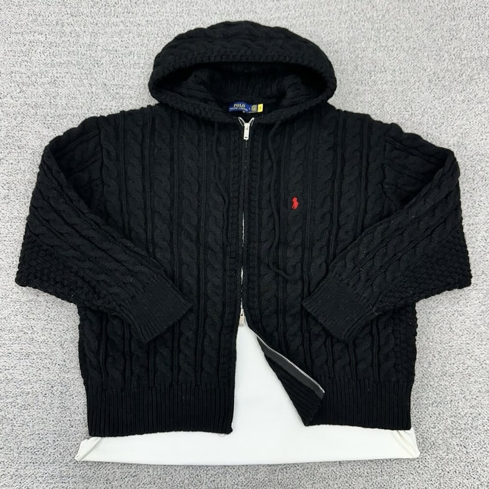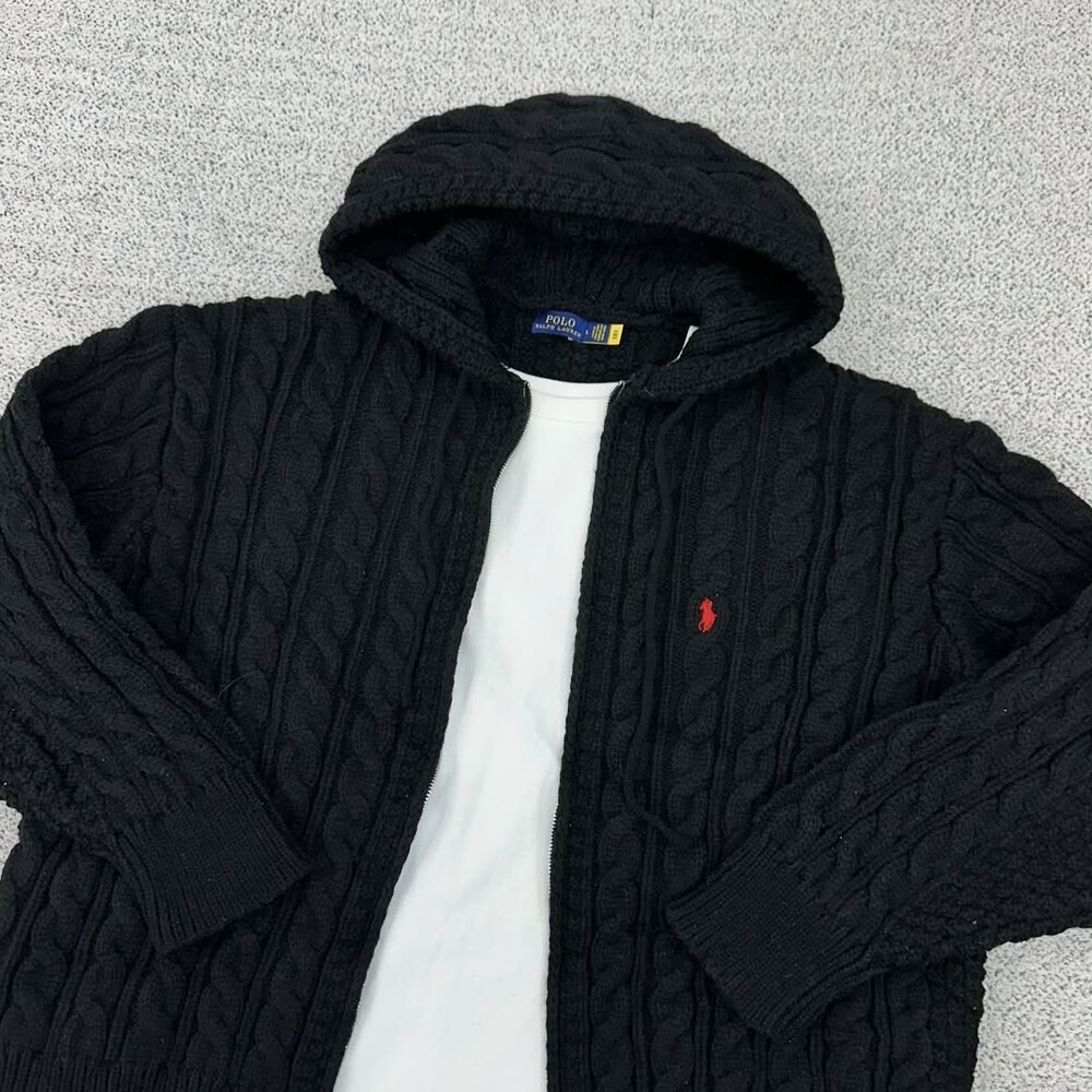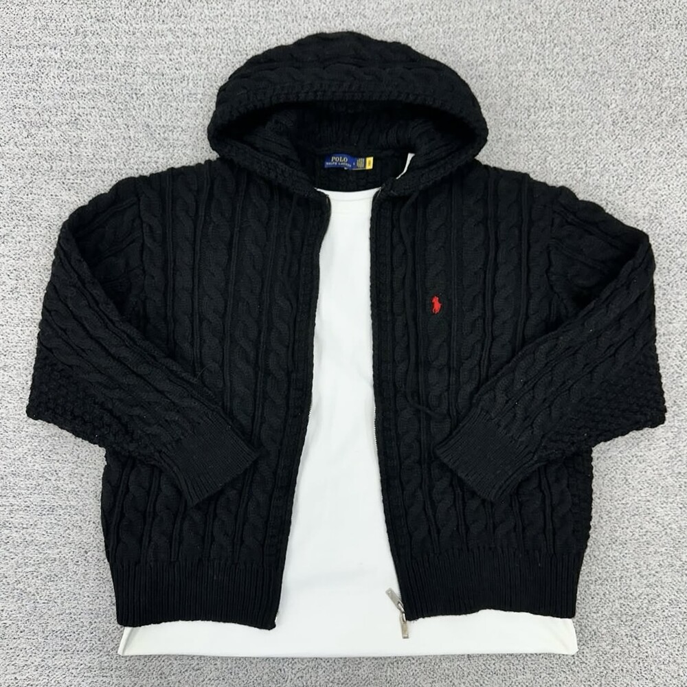 폴로 블랙 케이블 니트 후드집업
