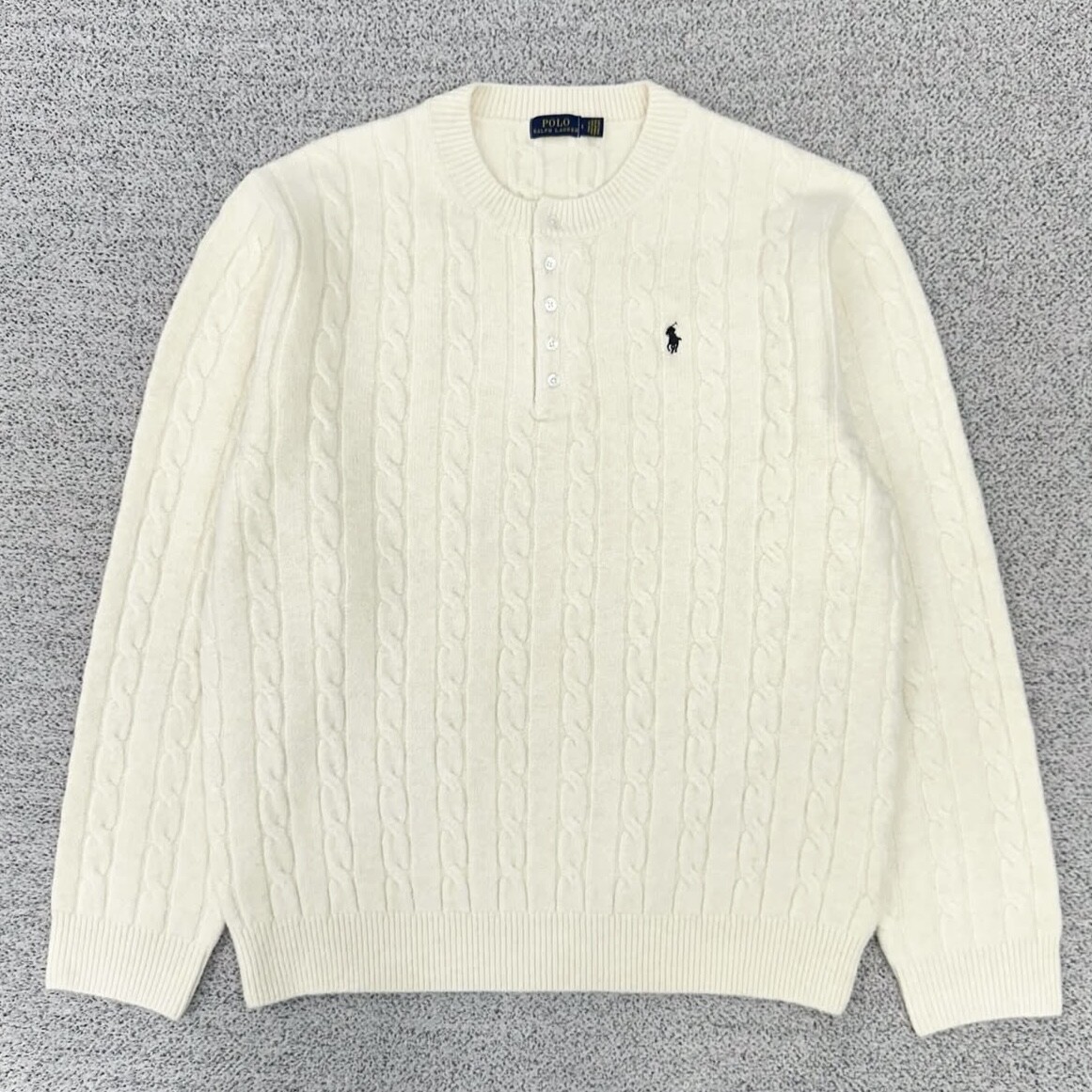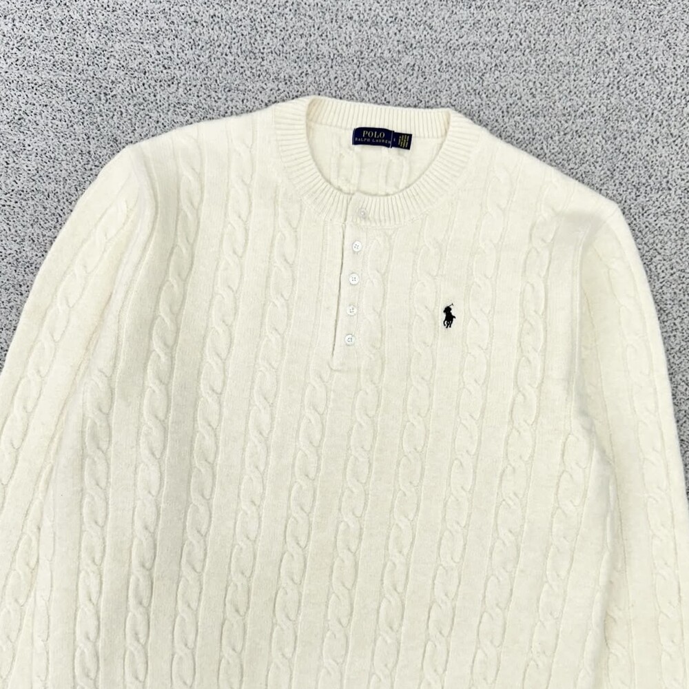폴로 아이보리 케이블 헨리넥 니트