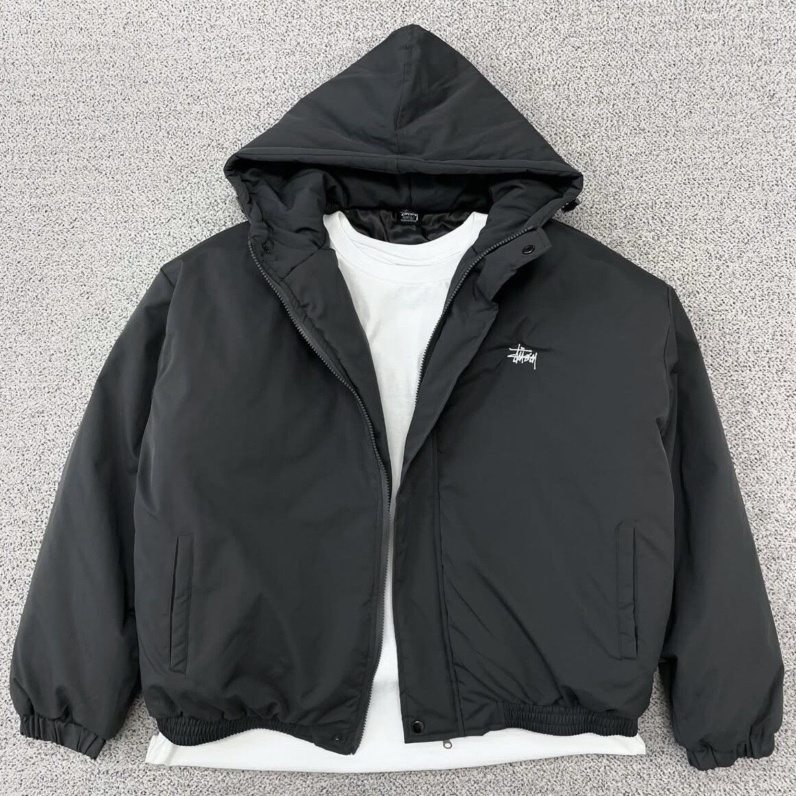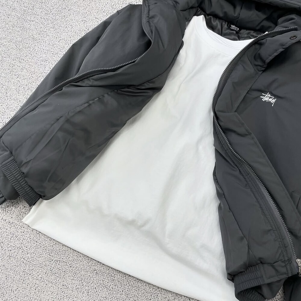 스투시 차콜 베이직 후드 패딩