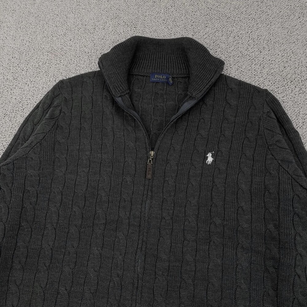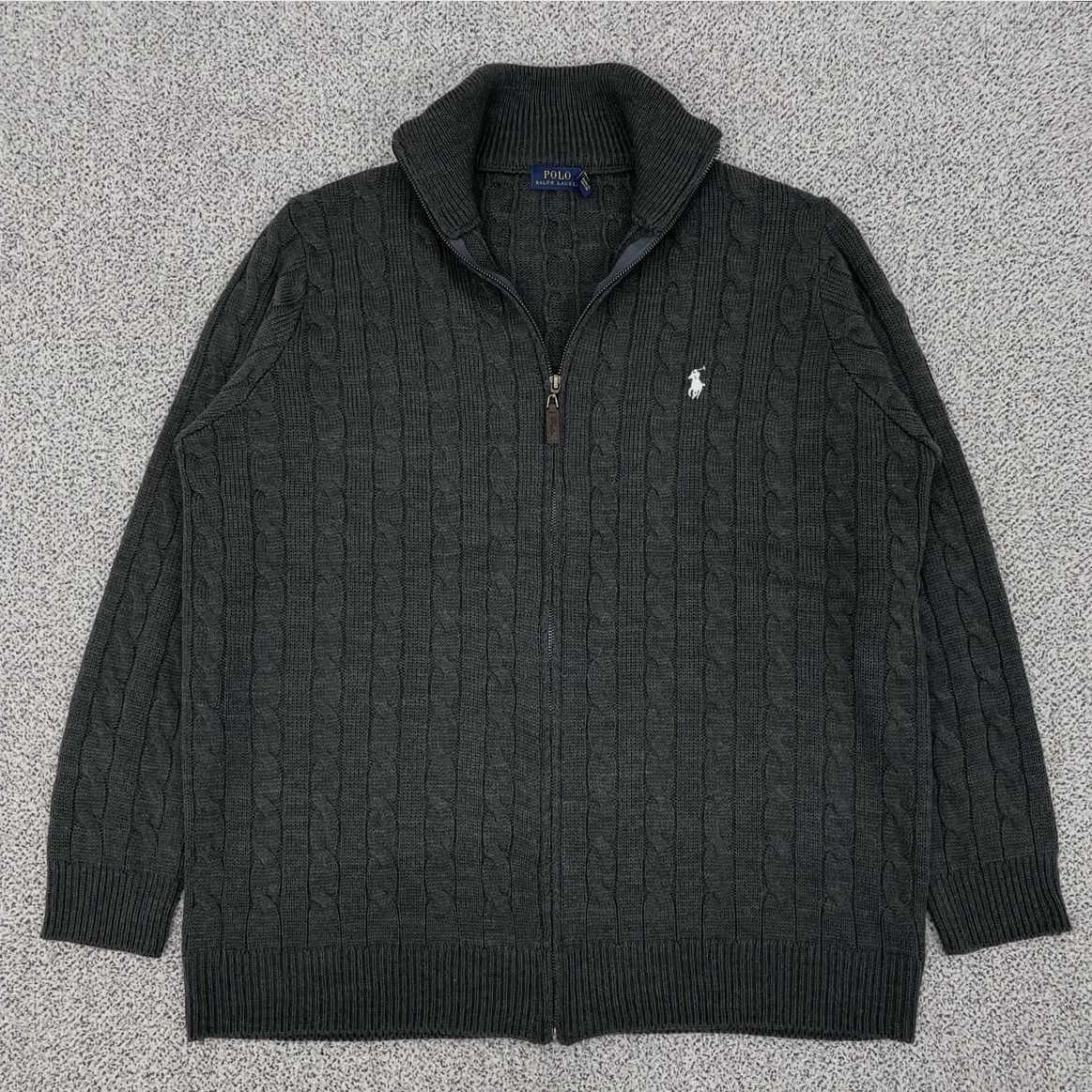 폴로 차콜 케이블 집업니트