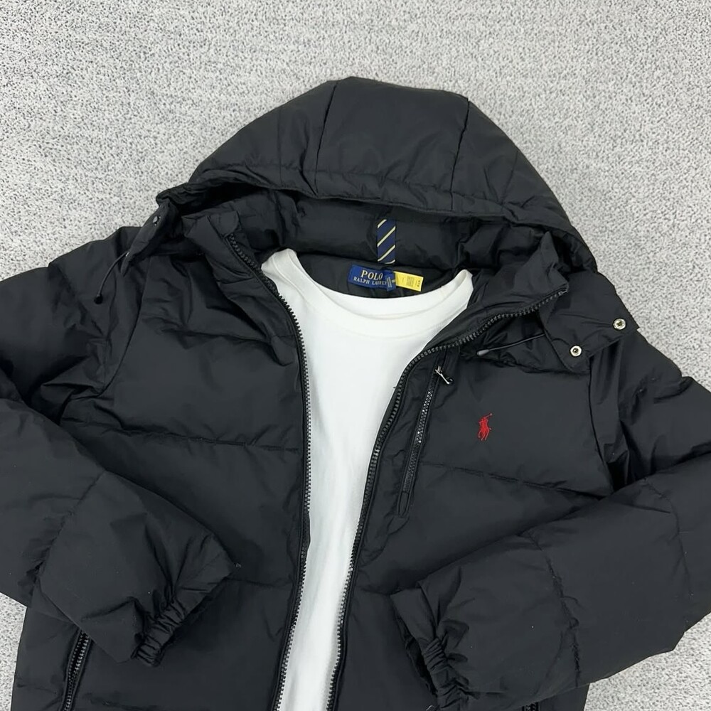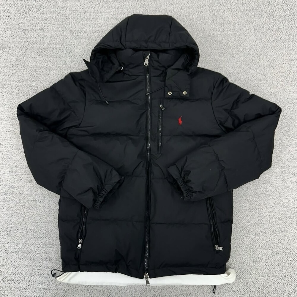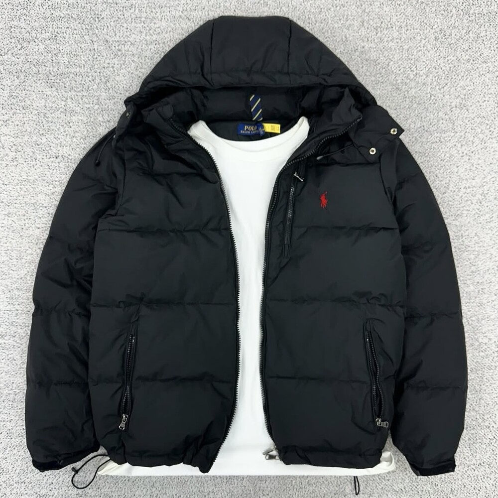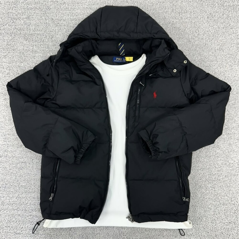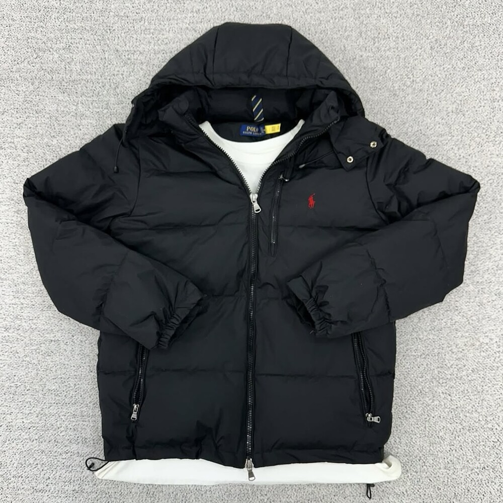 폴로 블랙 덕다운 후드 패딩자켓