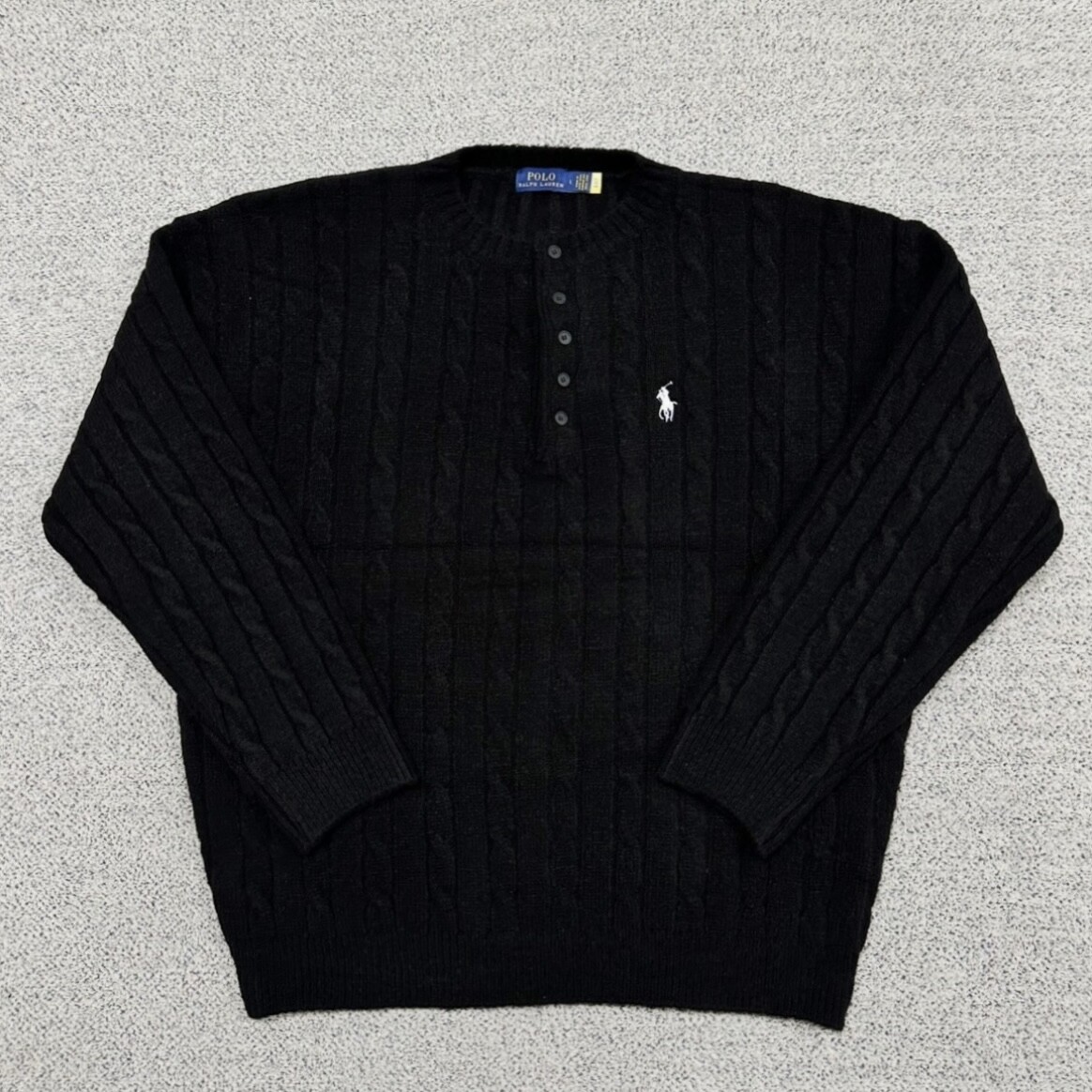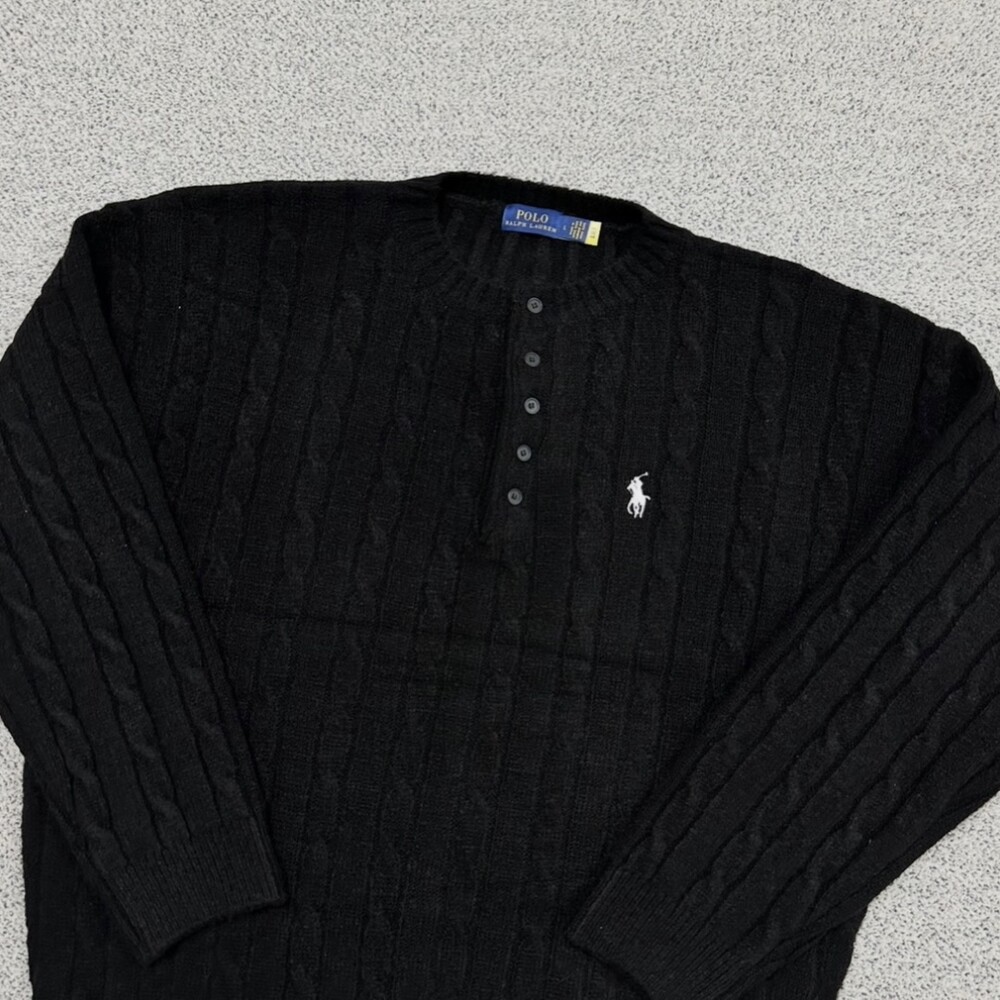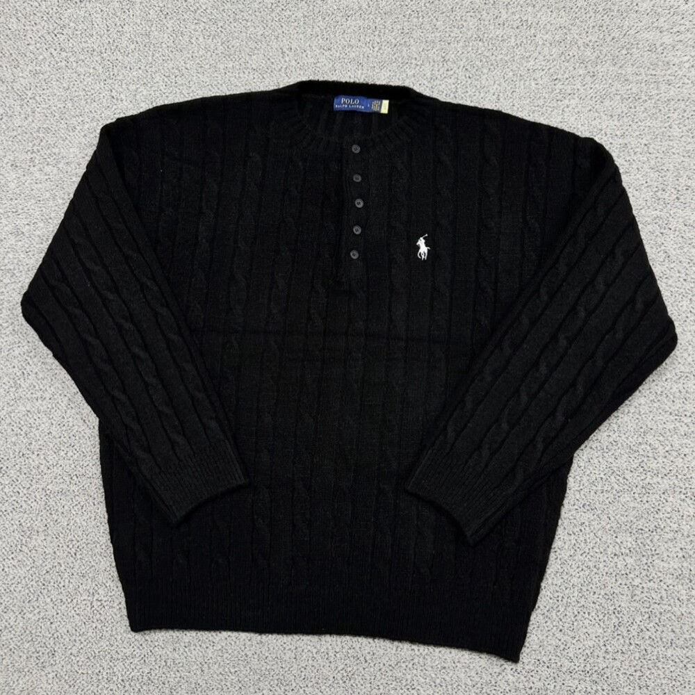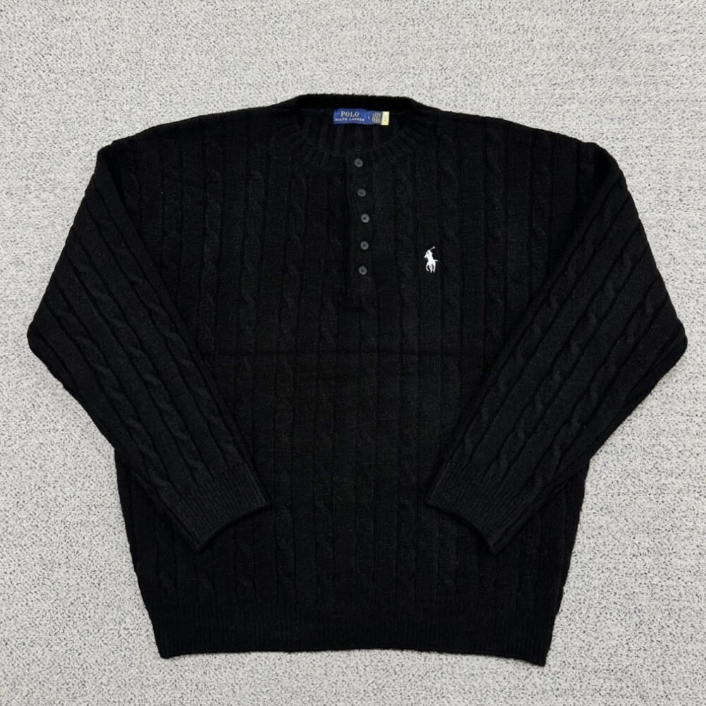 폴로 블랙 헤비케이블 헨리넥 니트