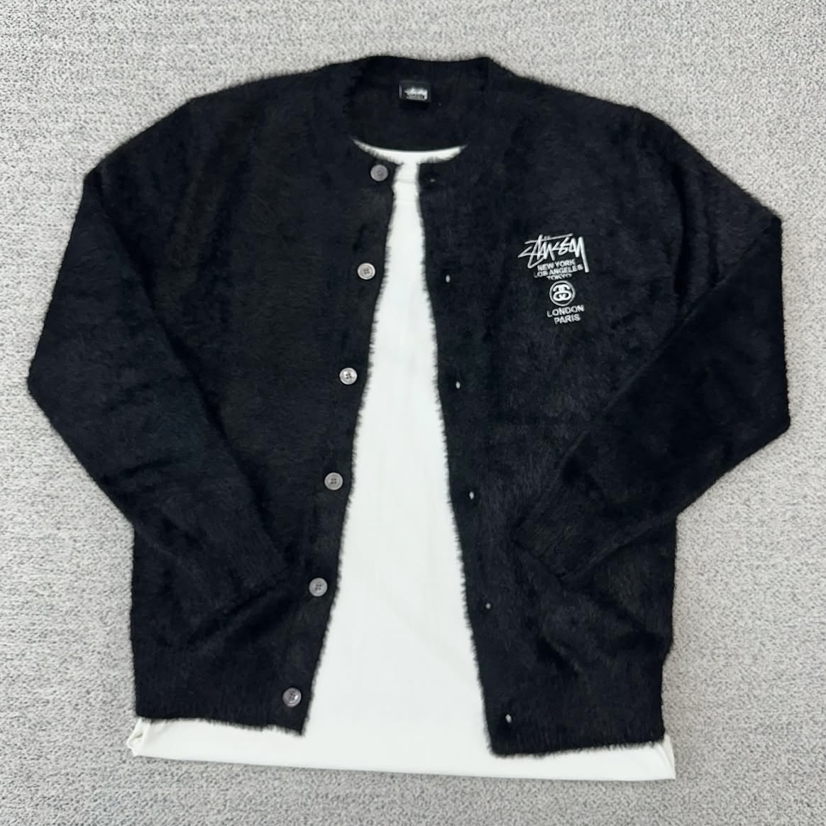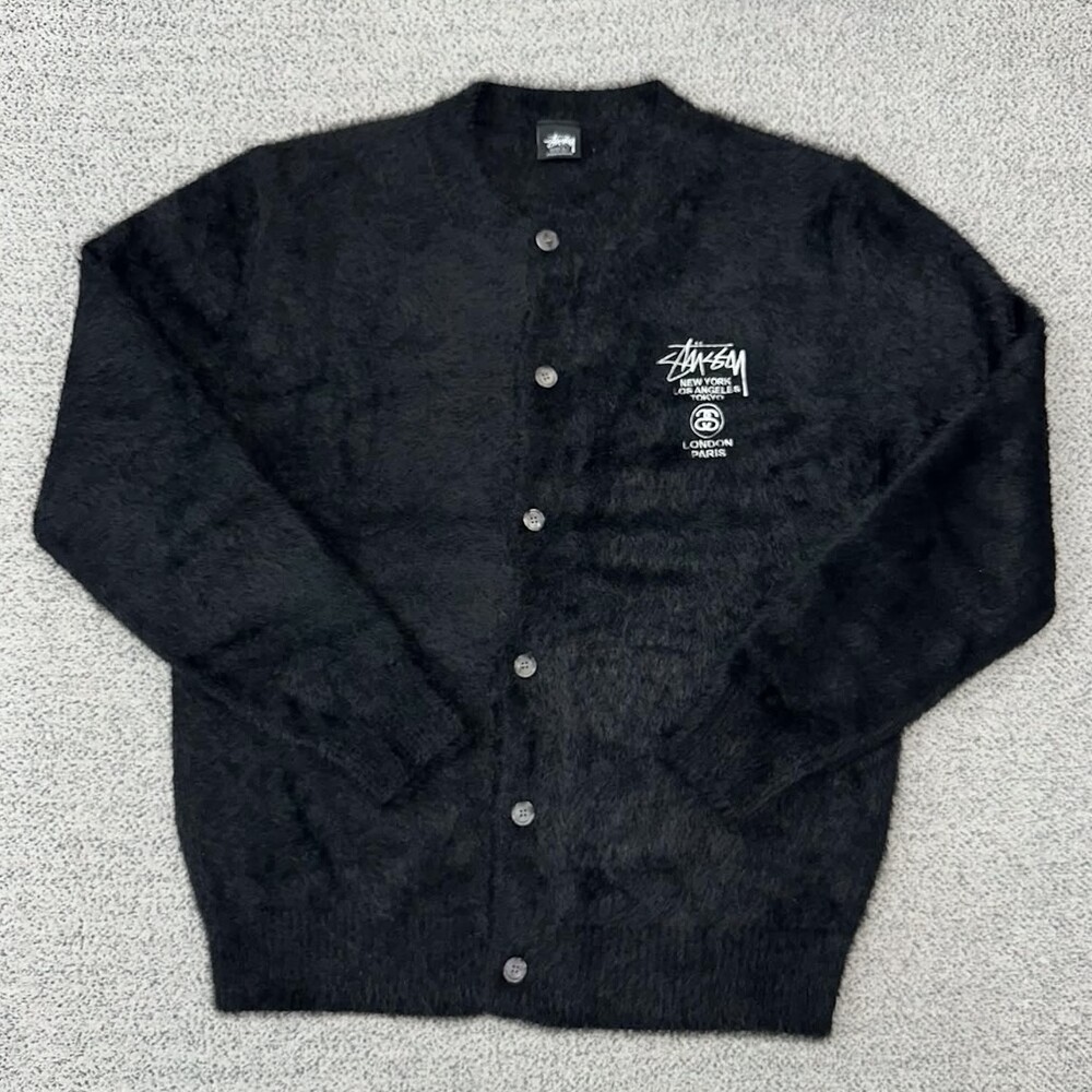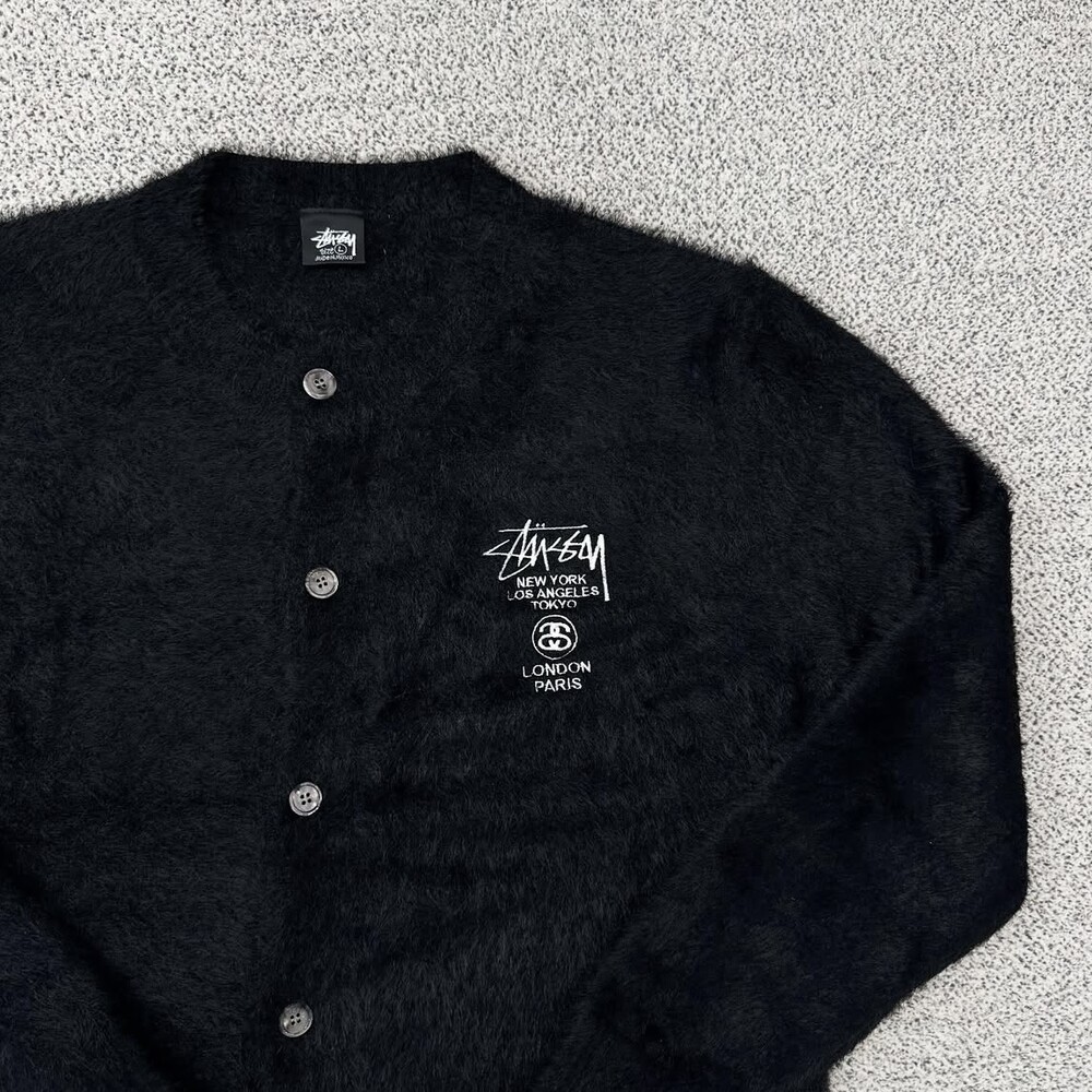 스투시 블랙 라운드 앙고라 가디건