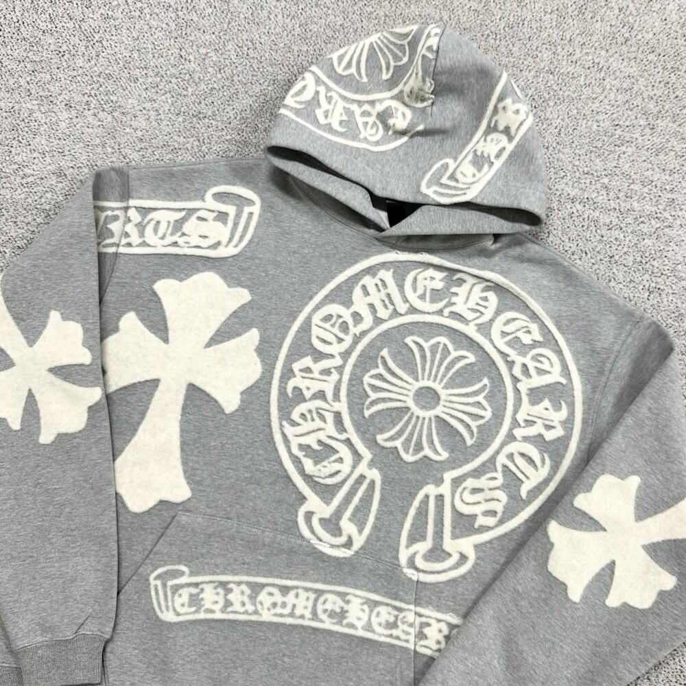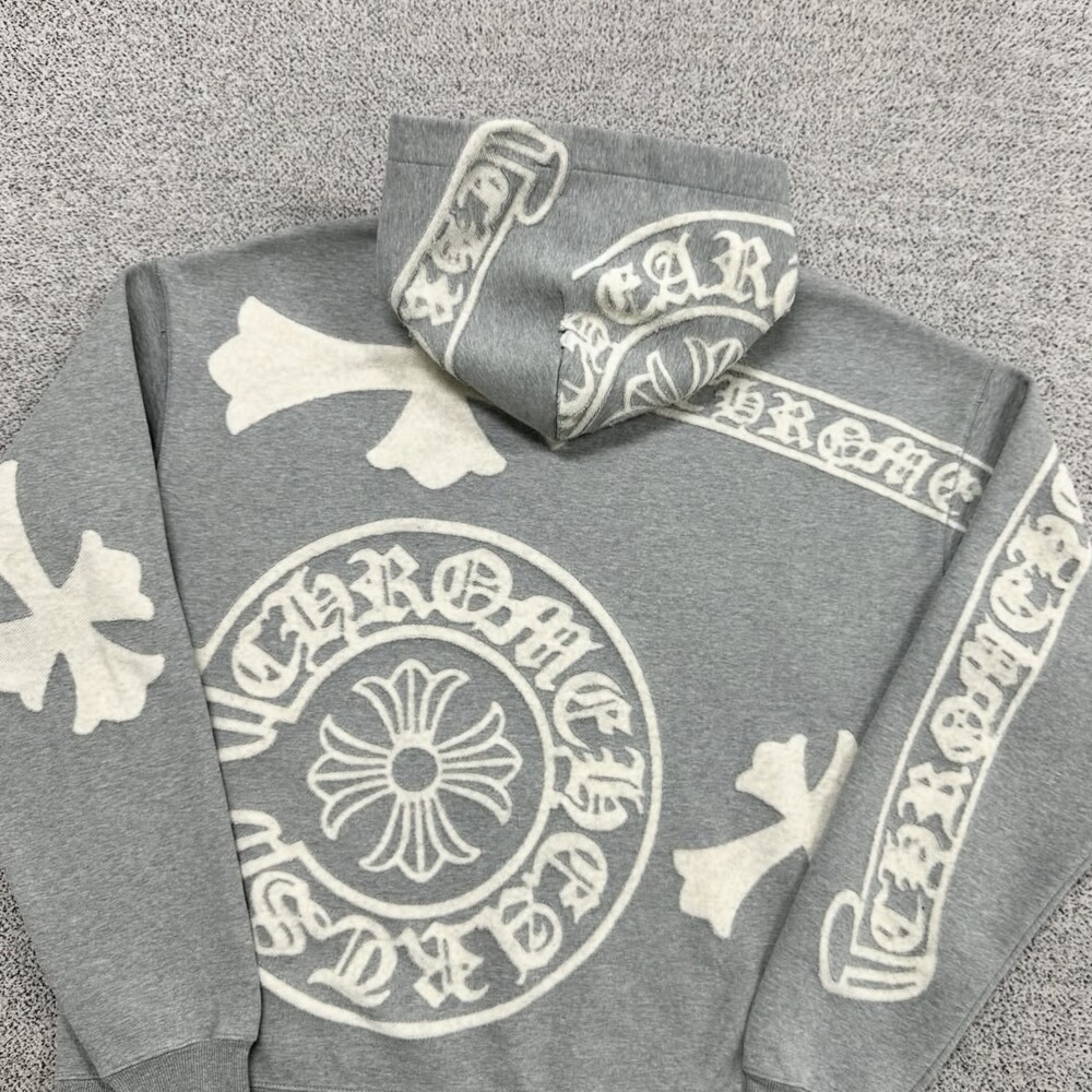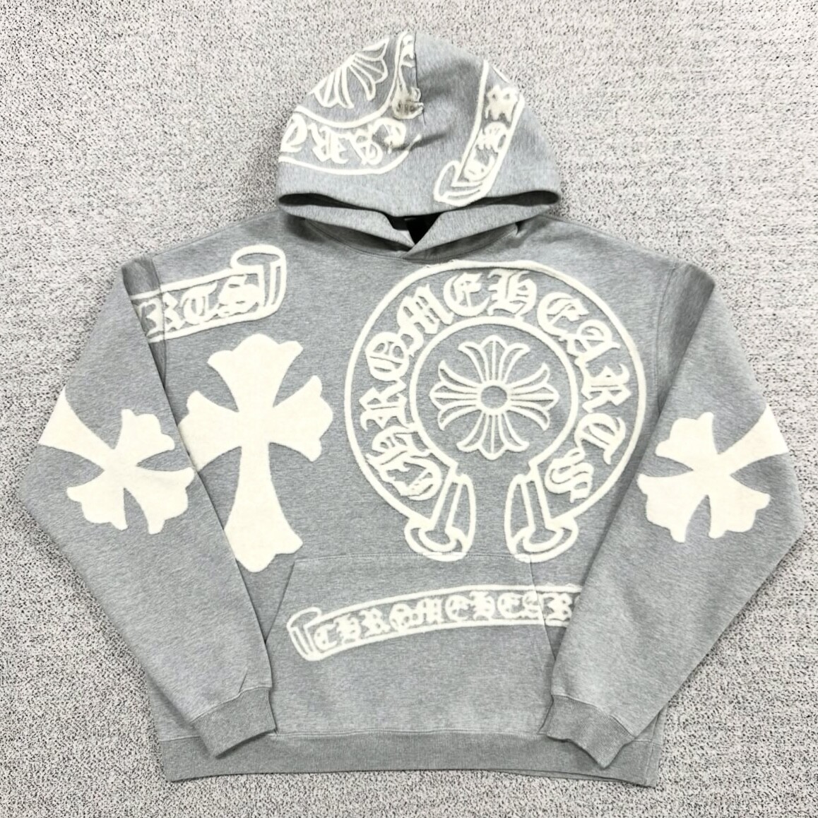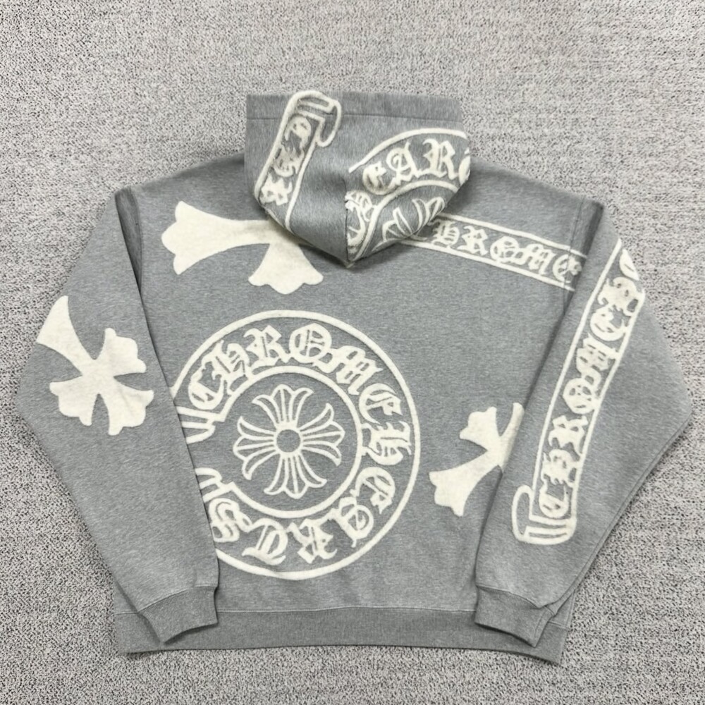 크롬하츠 엠보로고 그레이 오버핏 후드