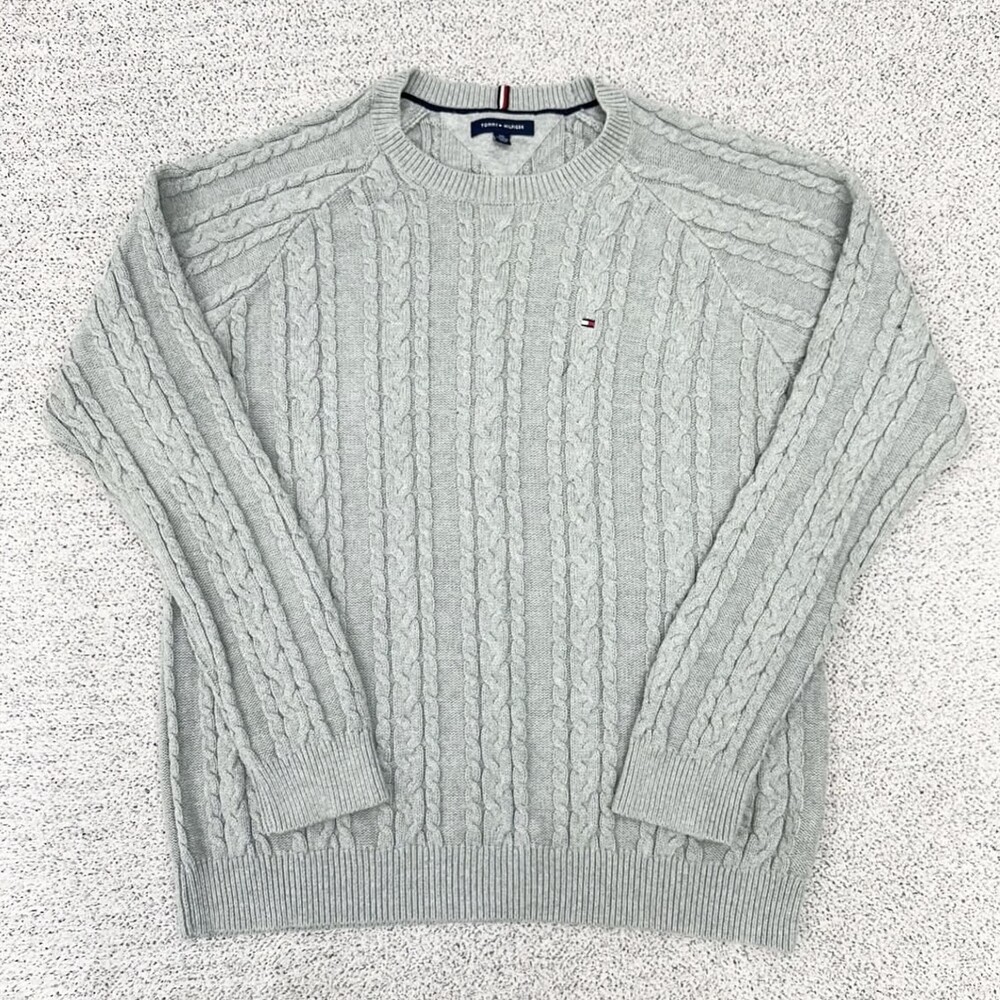 타미 그레이 케이블 라운드 니트