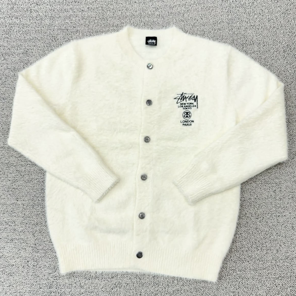 스투시 아이보리 라운드 앙고라 가디건