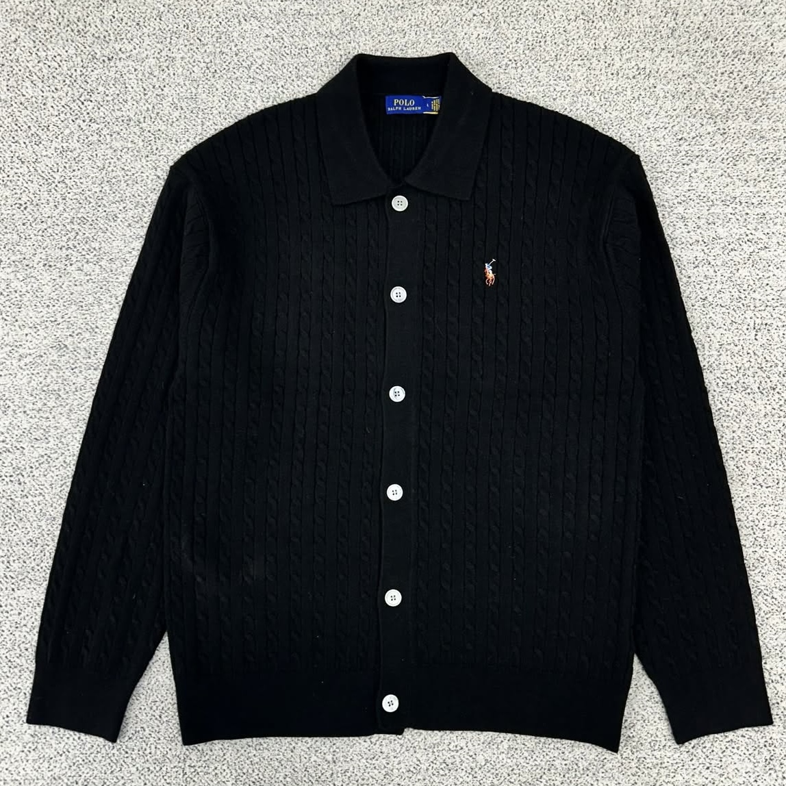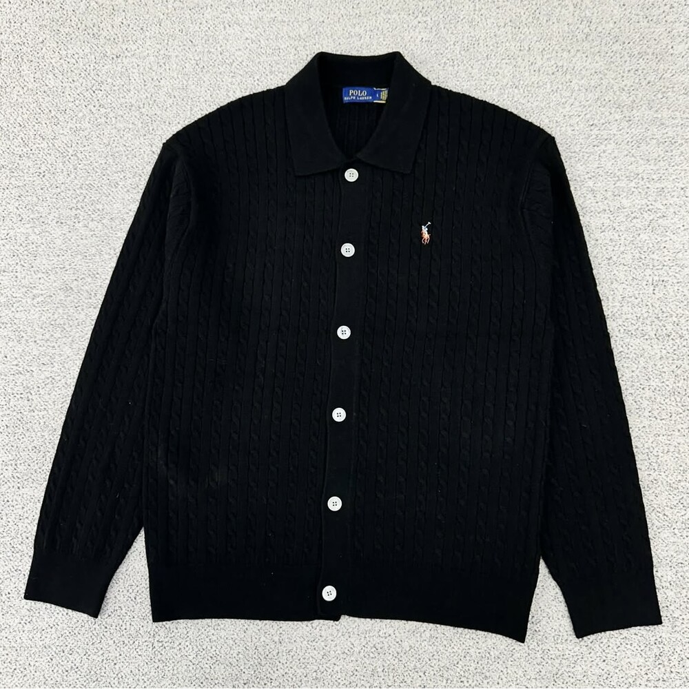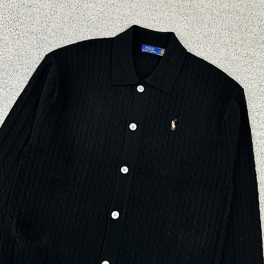 폴로 블랙 멀티포니 케이블 카라 가디건