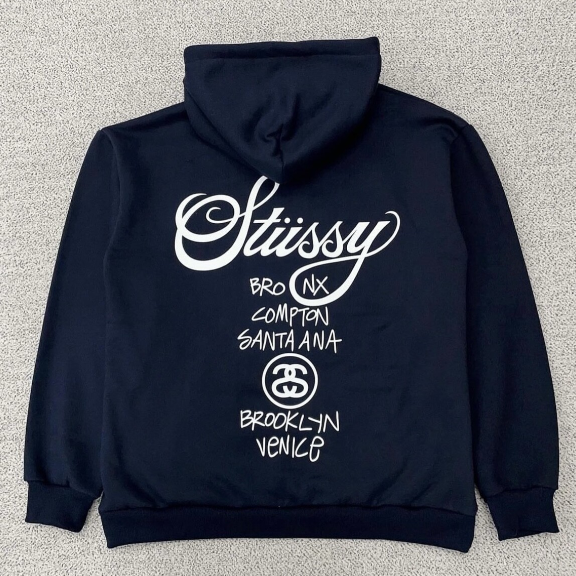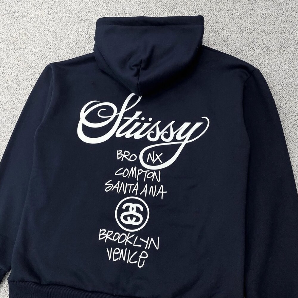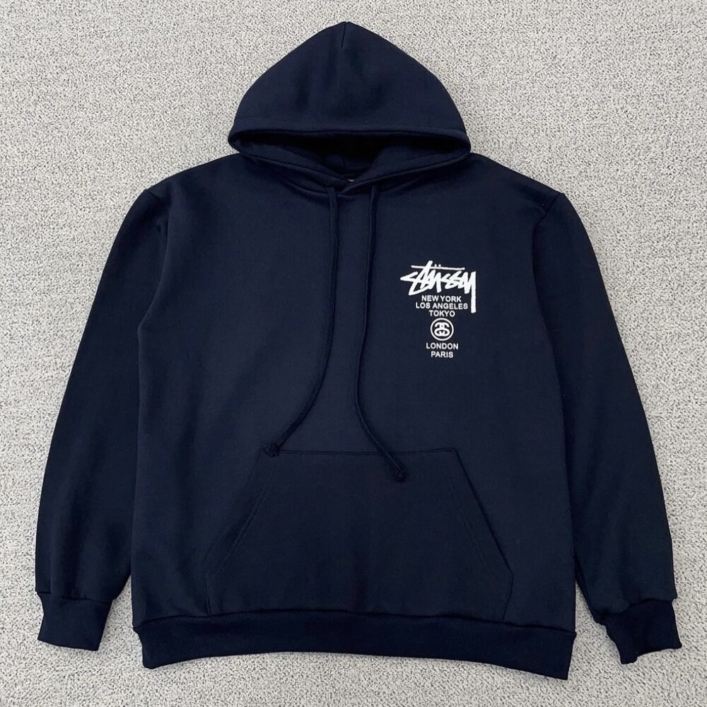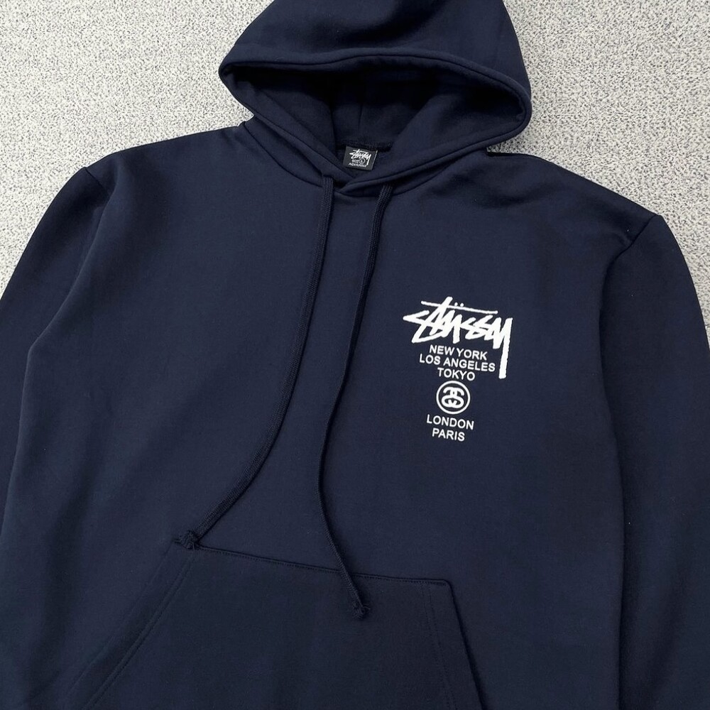 스투시 네이비 월드투어 백로고 후드