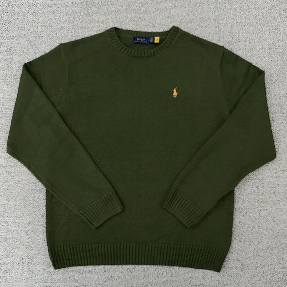 폴로 피마코튼 올리브 니트