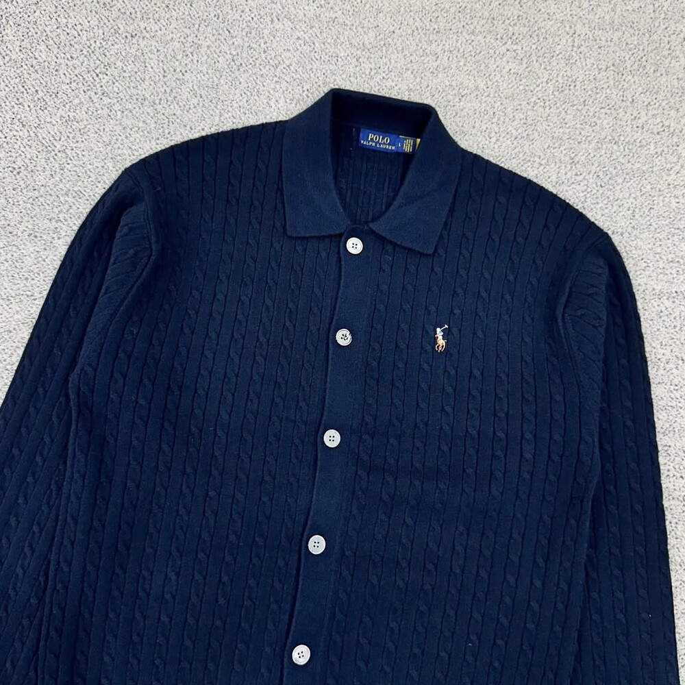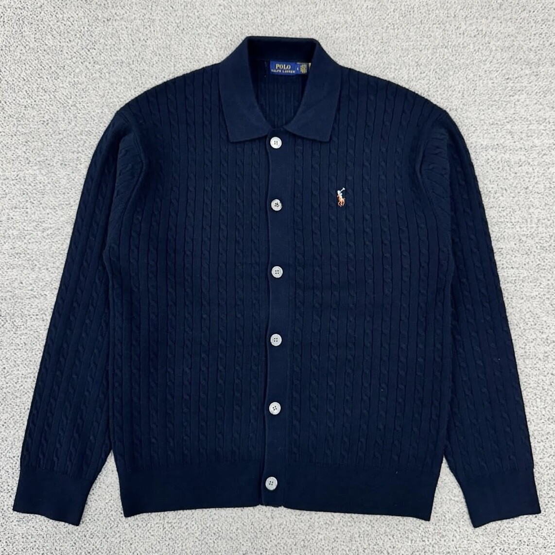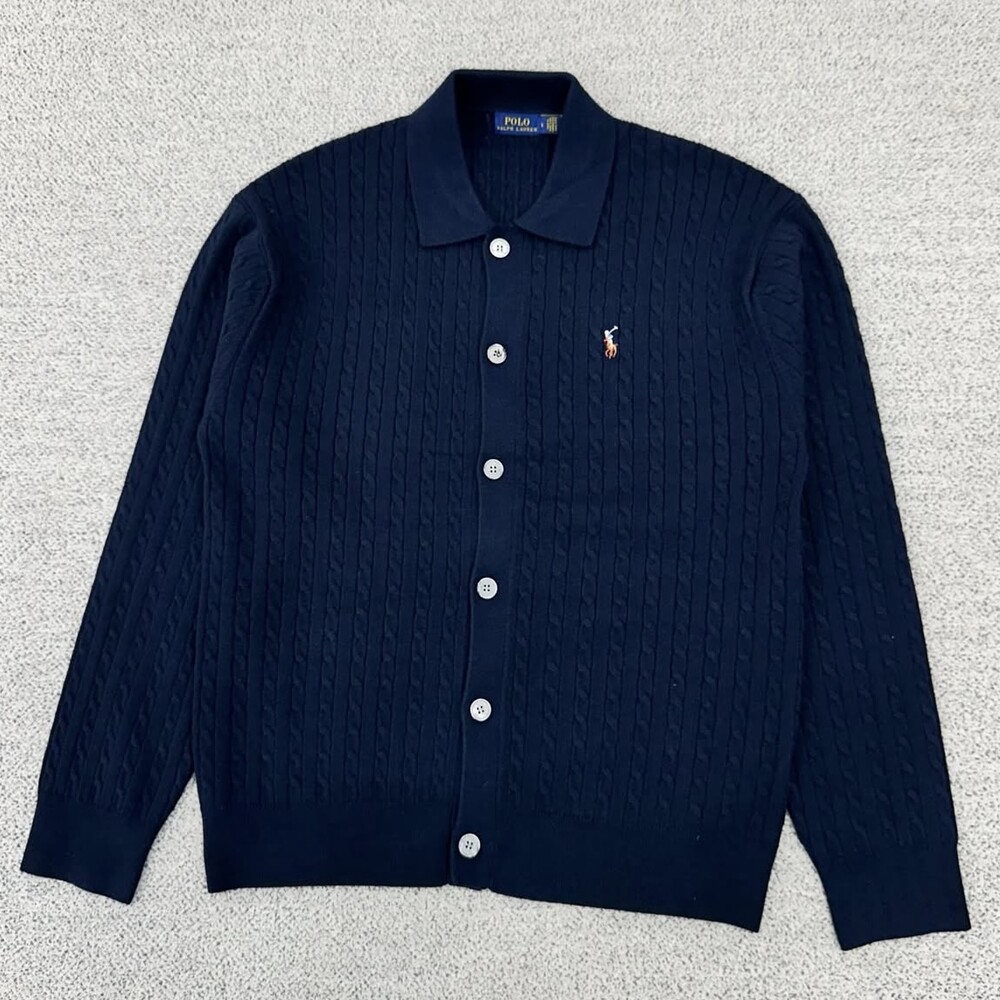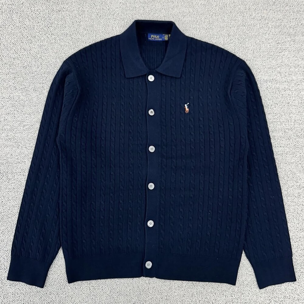 폴로 네이비 멀티포니 케이블 카라 가디건