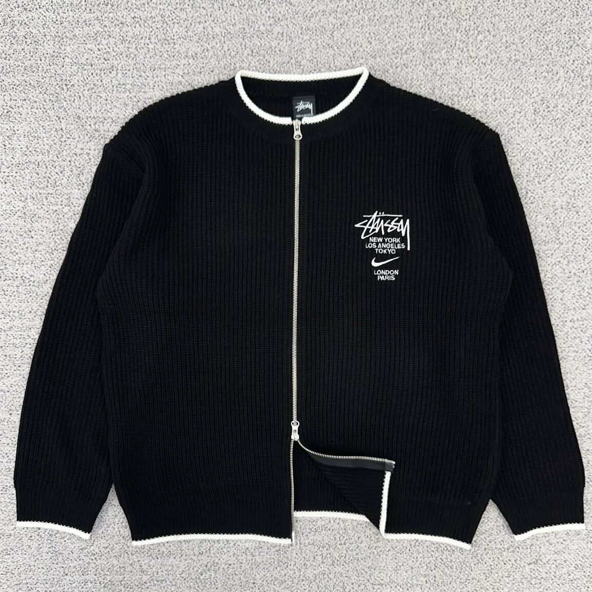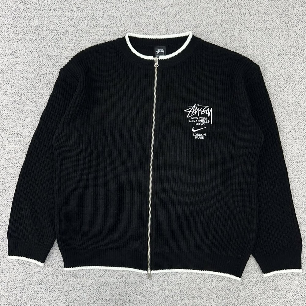 스투시 블랙 투웨이 집업니트