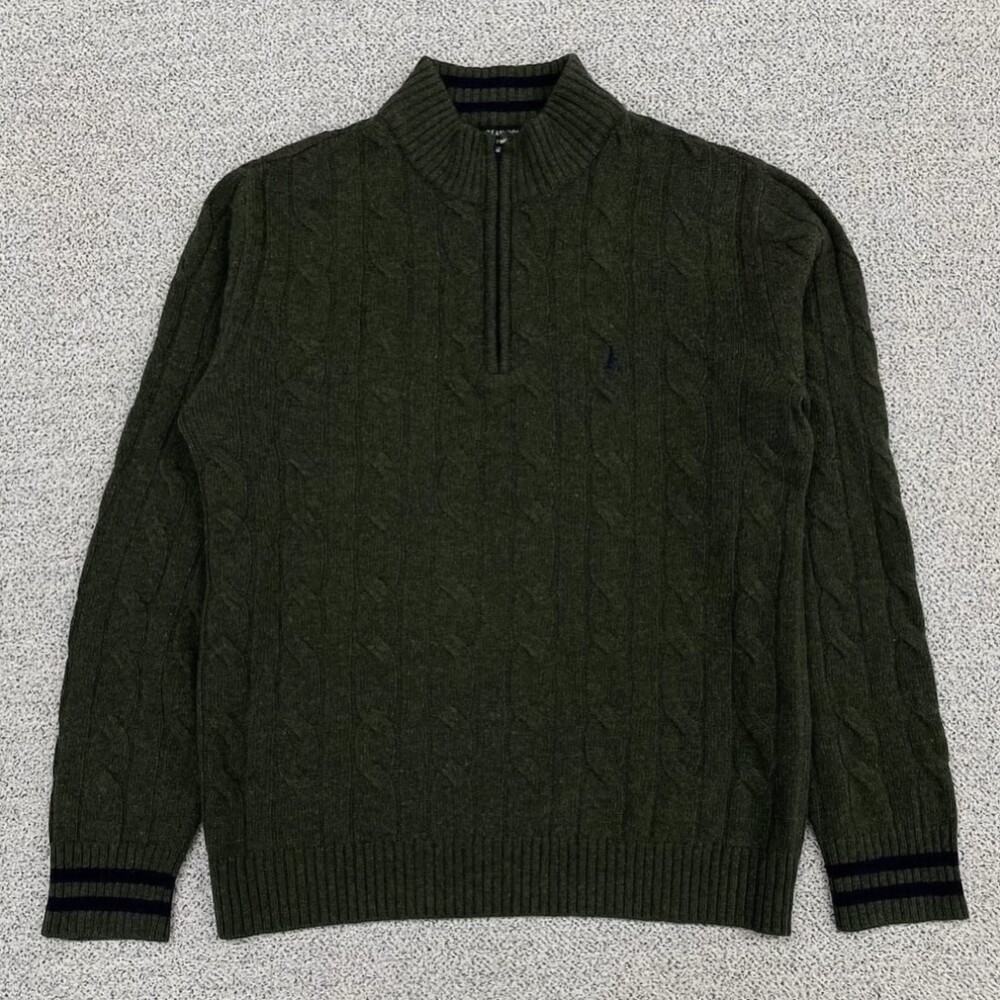 빈폴 카키 반집업 니트