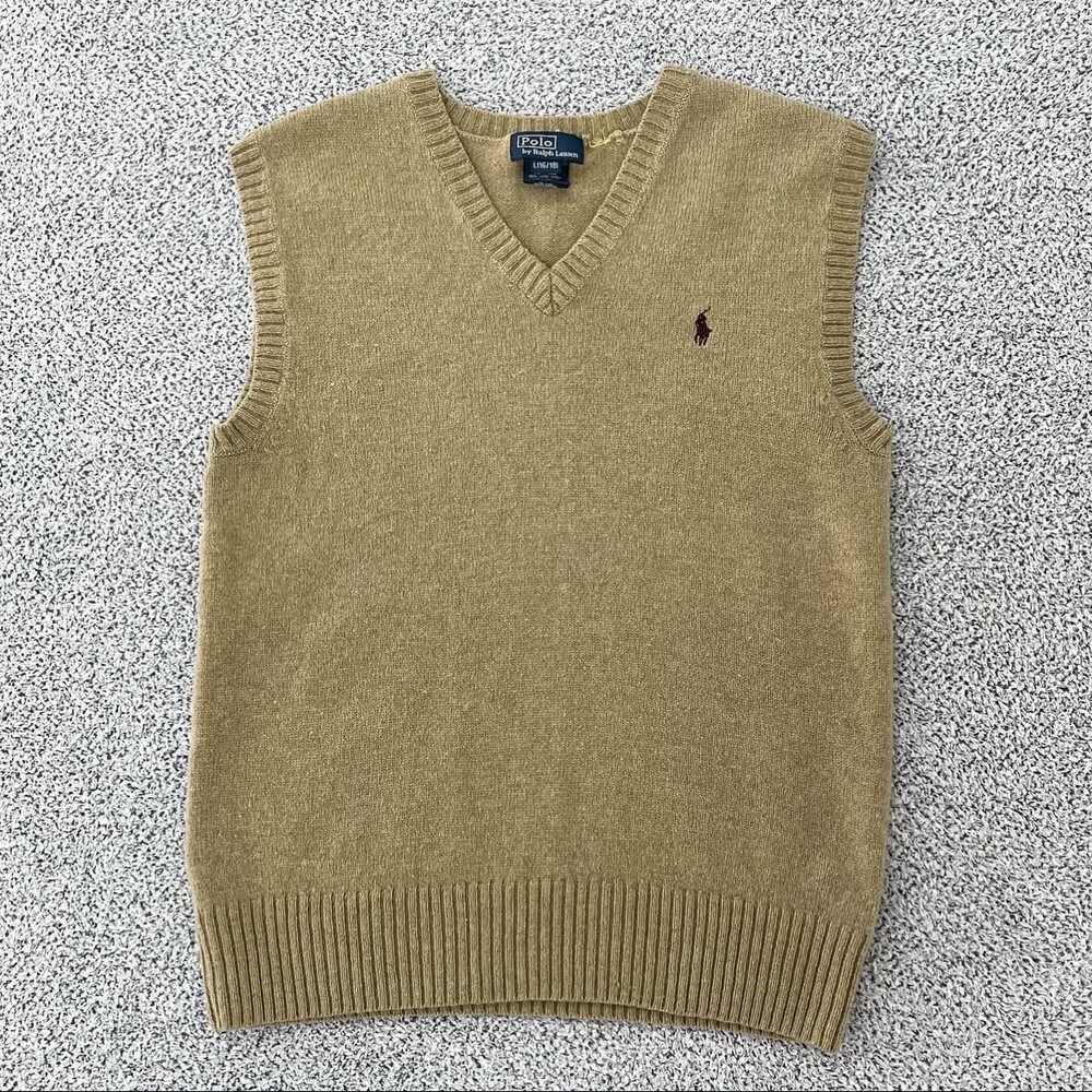 폴로 황토색 브이넥 니트조끼