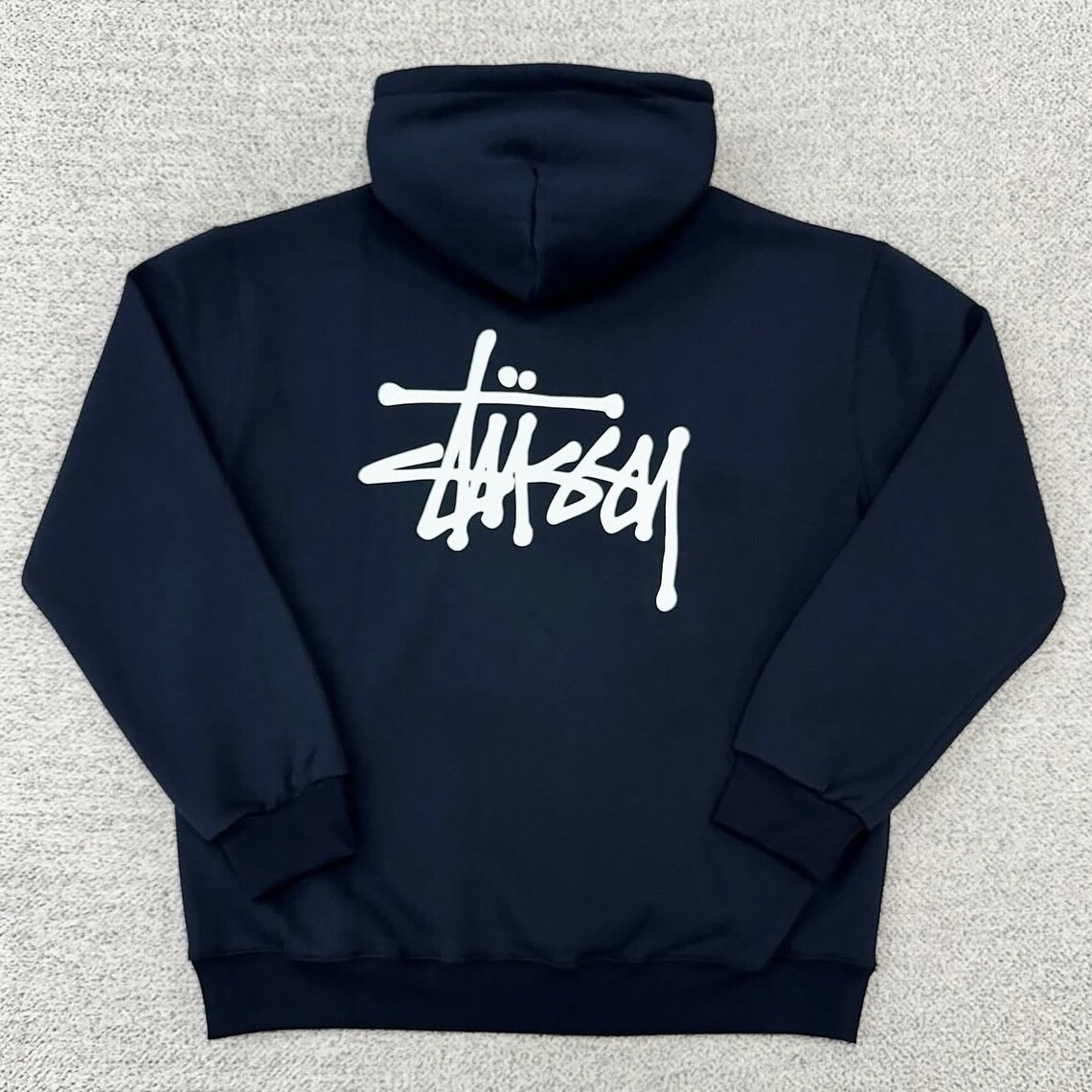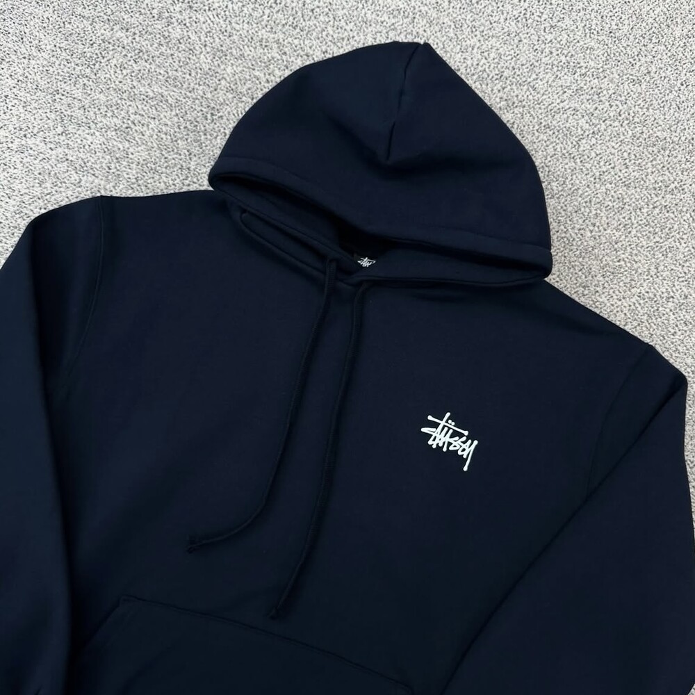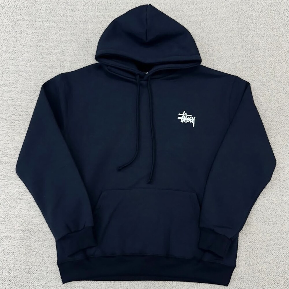 스투시 네이비 백로고 후드