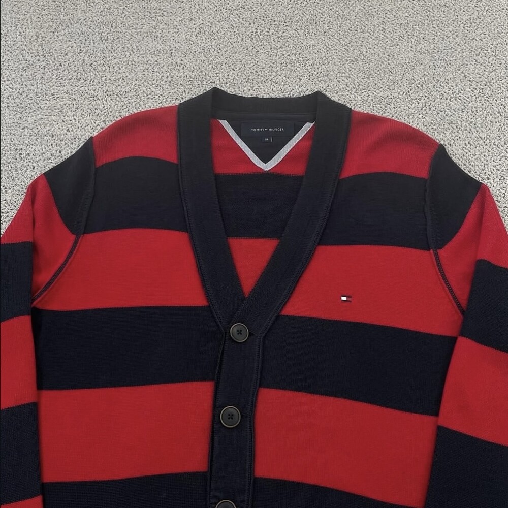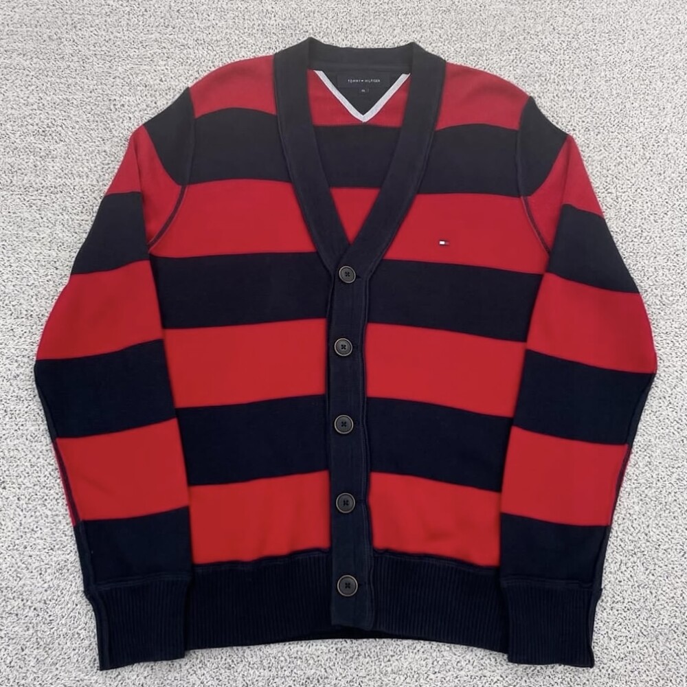 타미 레드 단가라 브이넥 가디건