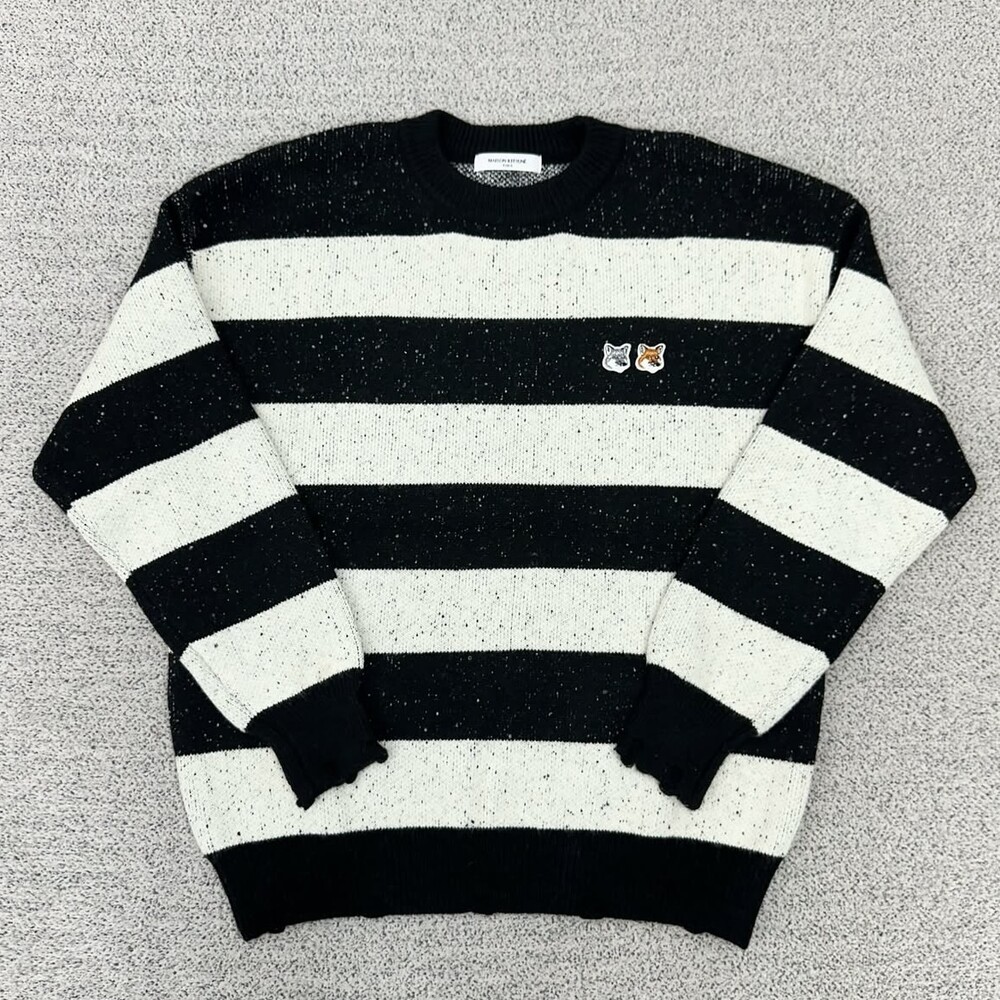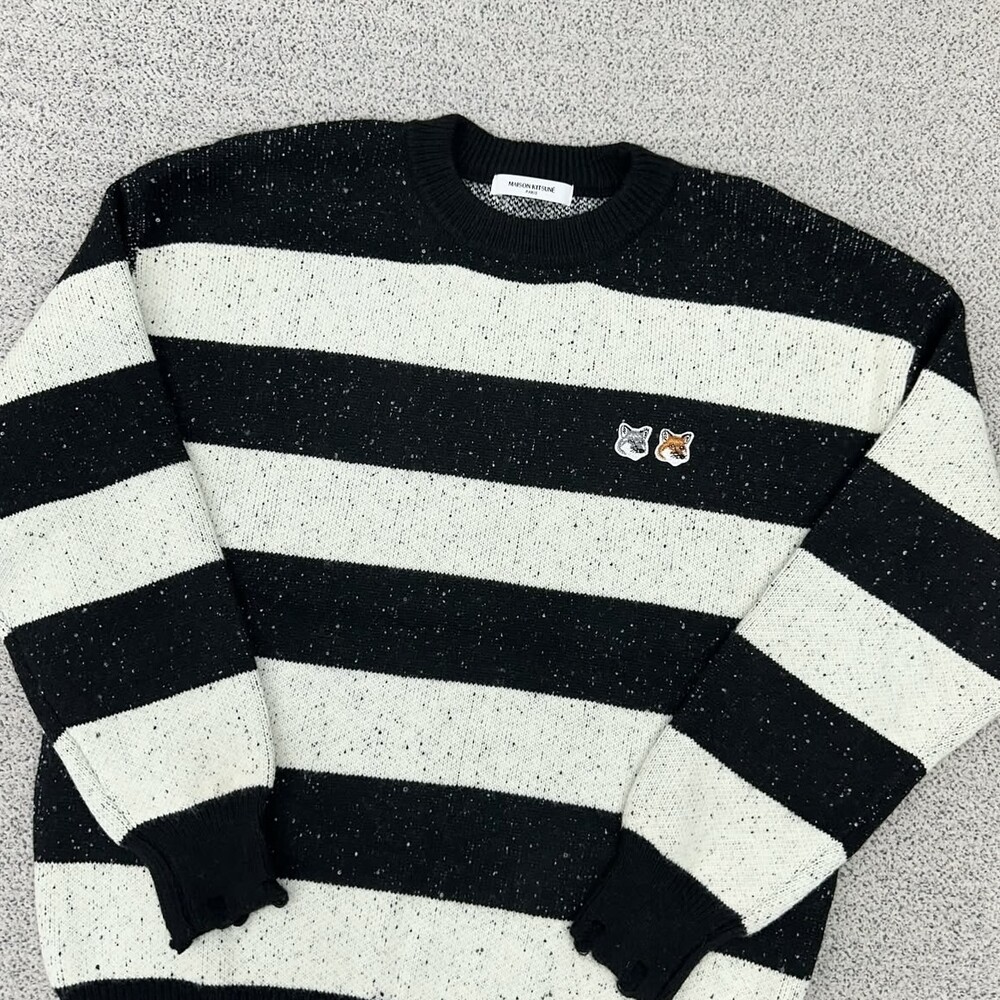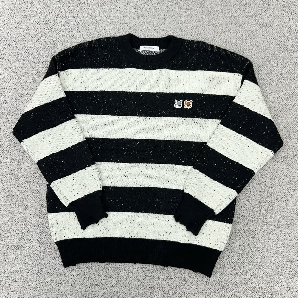 키츠네 더블헤드 블랙 단가라 니트