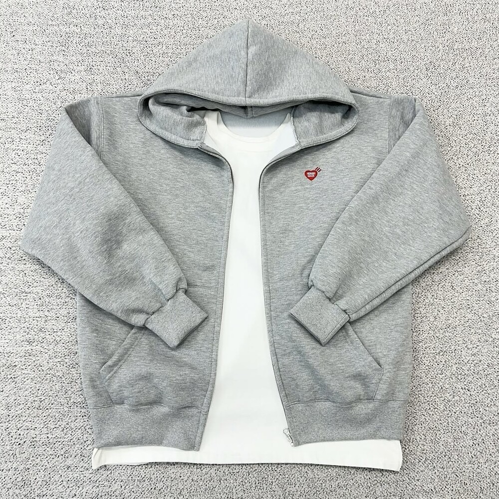 휴먼메이드 하트로고 그레이 후드집업