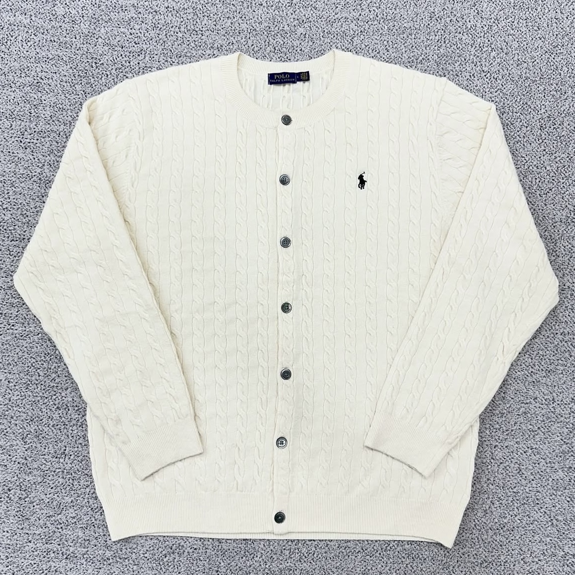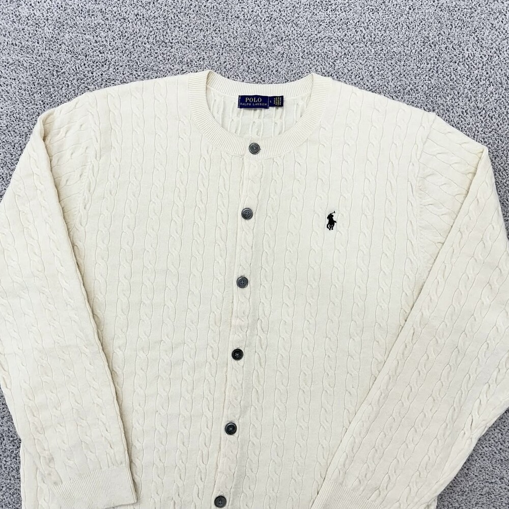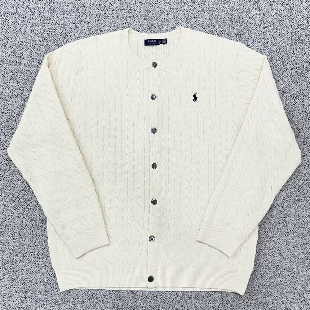 폴로 아이보리 케이블 라운드 가디건