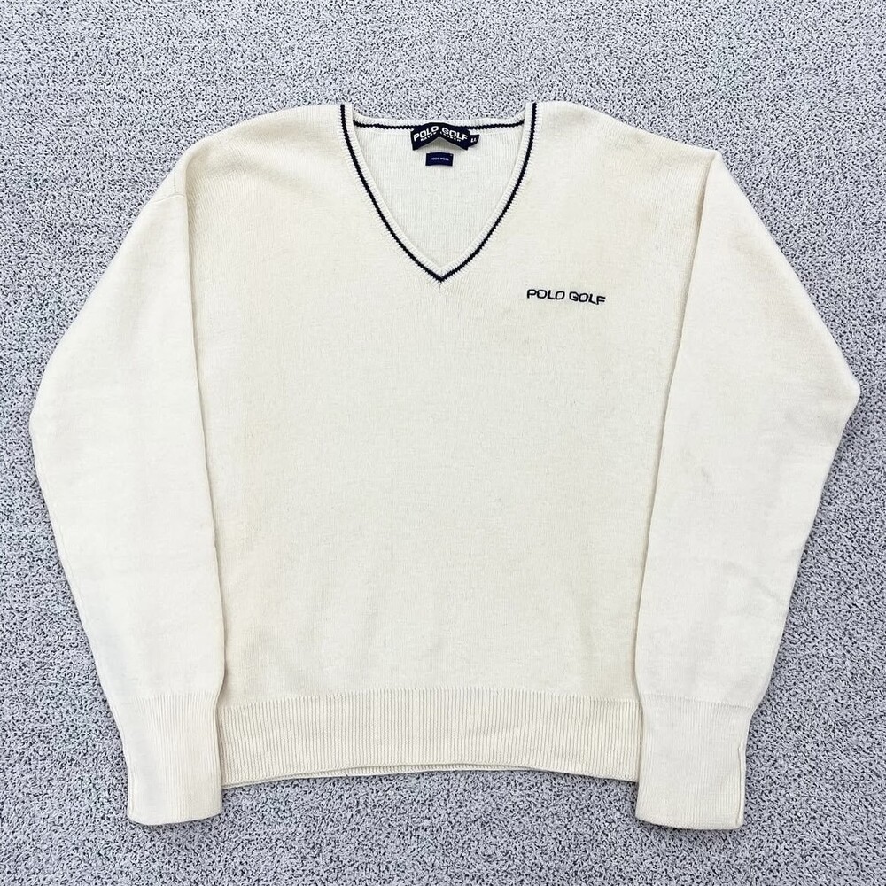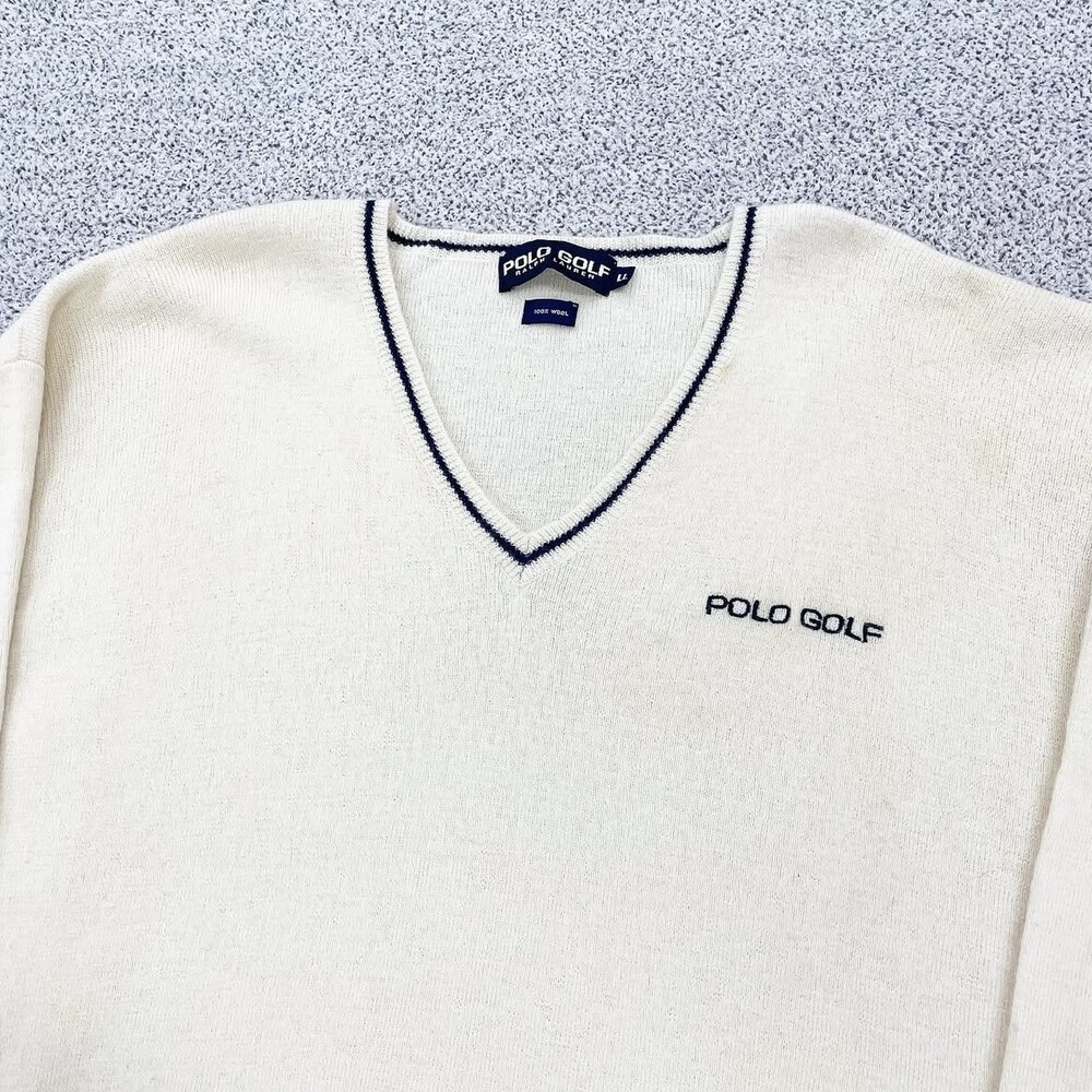 폴로 아이보리 골프 브이넥 니트