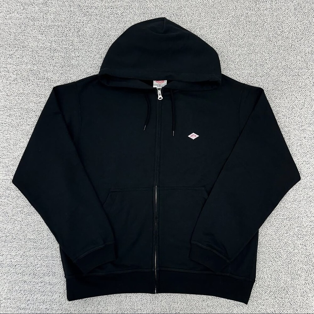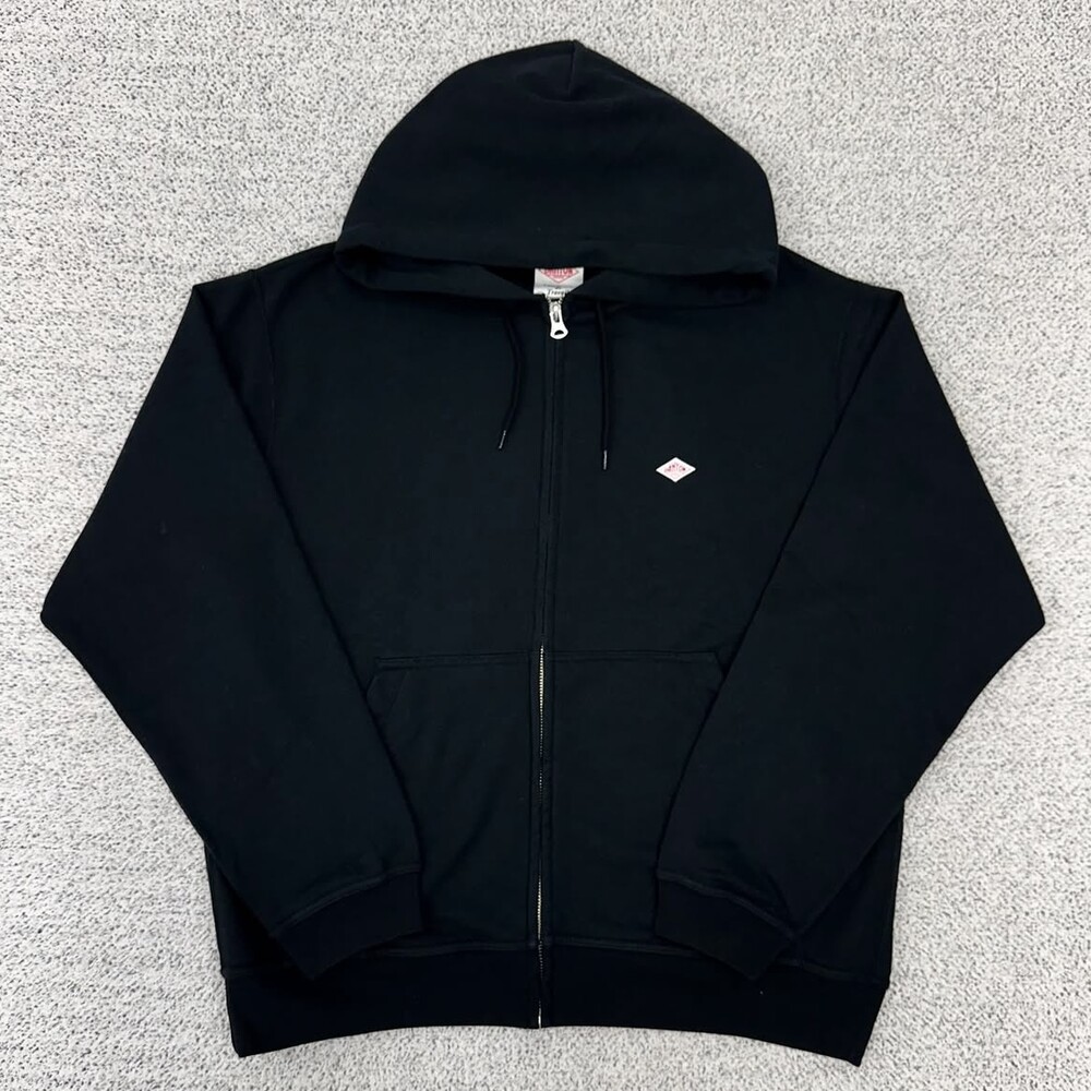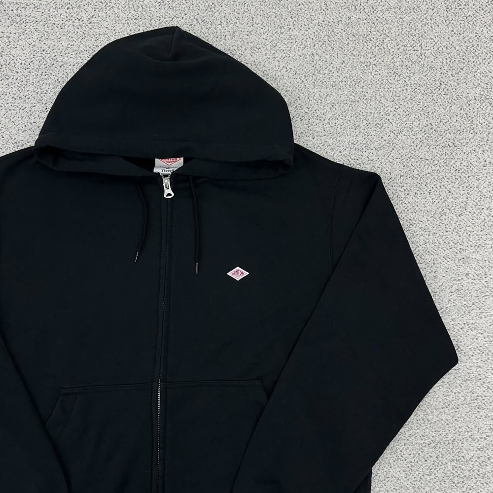 단톤 블랙 로고패치 후드집업