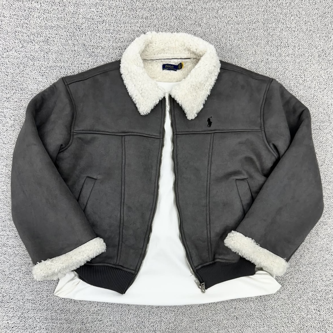 폴로 차콜 스웨이드 양털 자켓