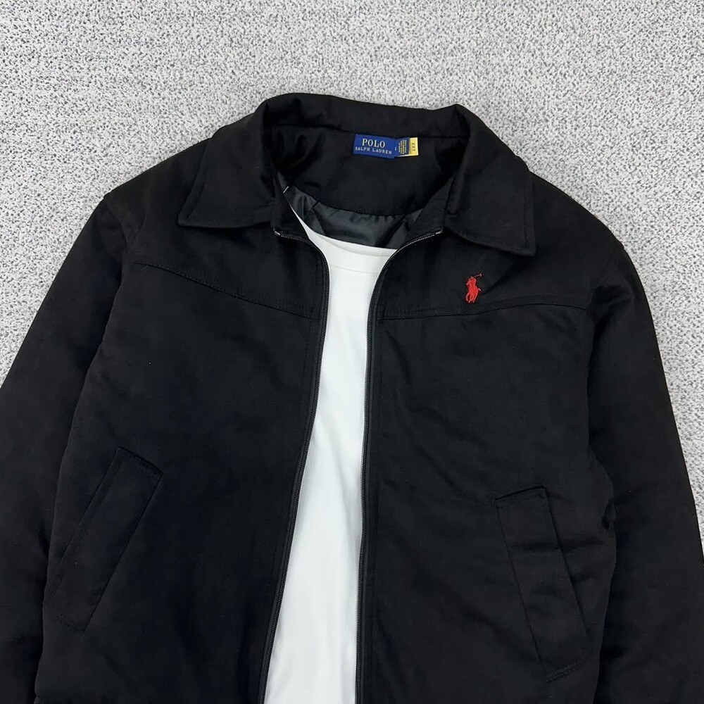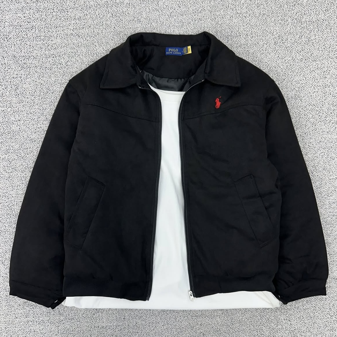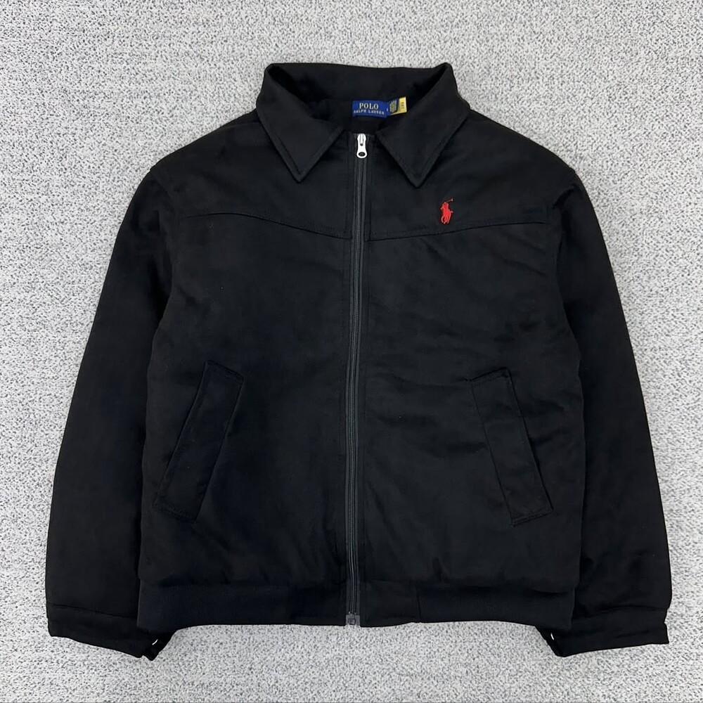 폴로 블랙 크롭 스웨이드 패딩자켓
