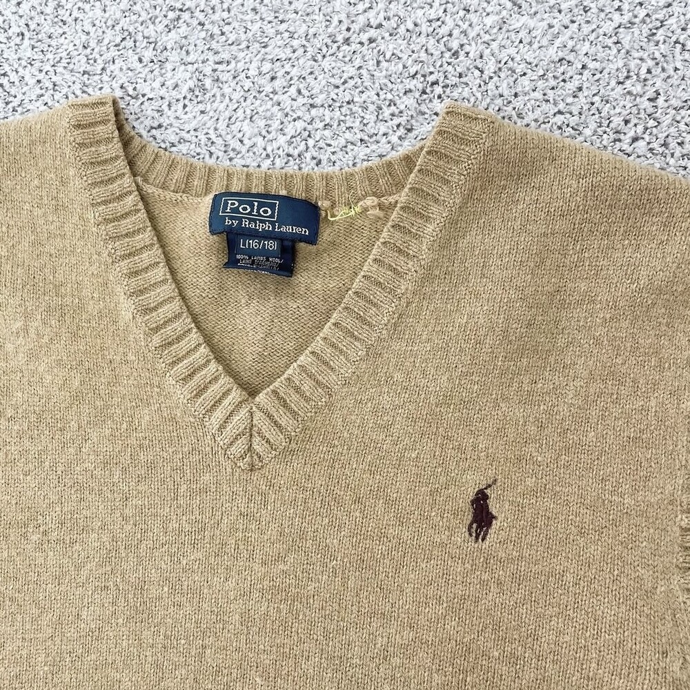 폴로 황토색 브이넥 니트조끼
