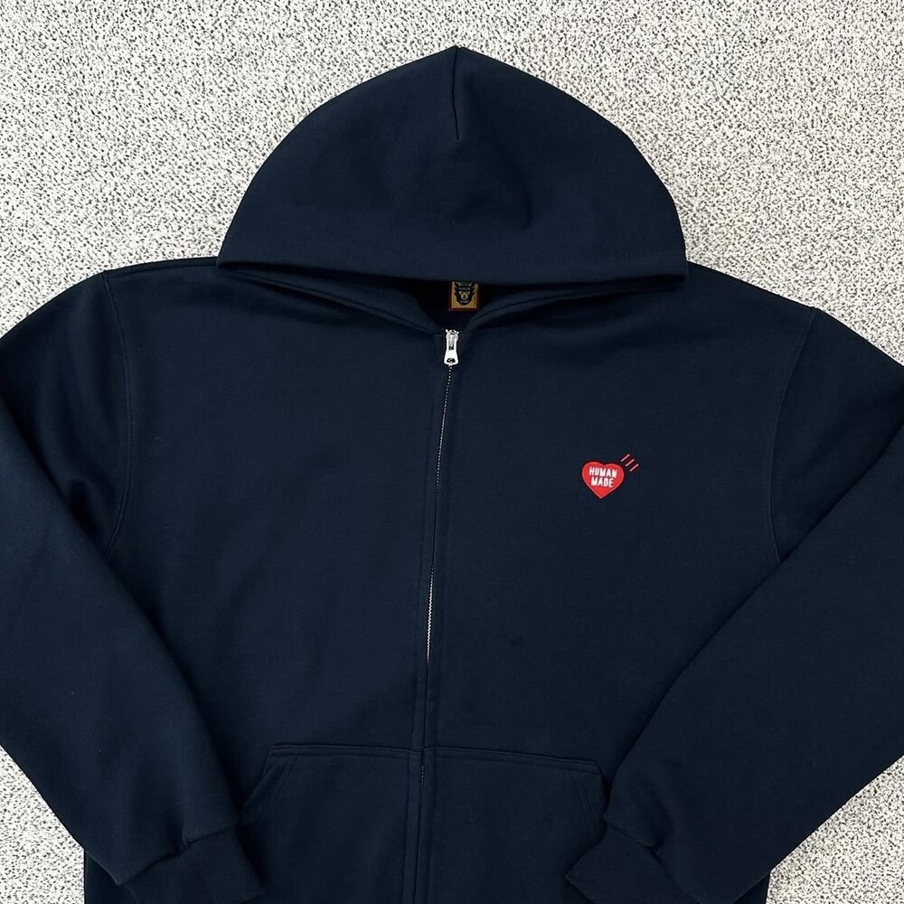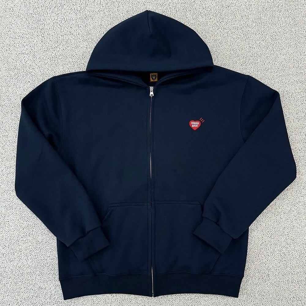 휴먼메이드 하트로고 네이비 후드집업