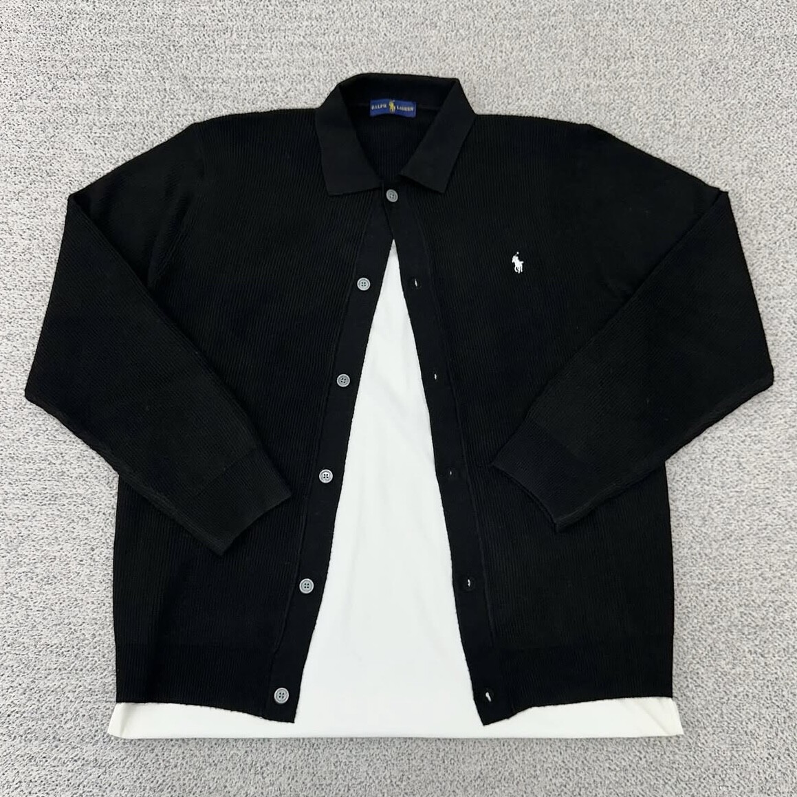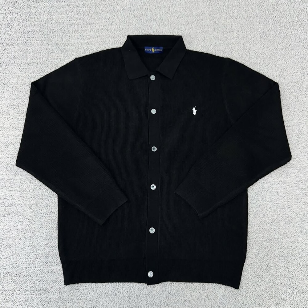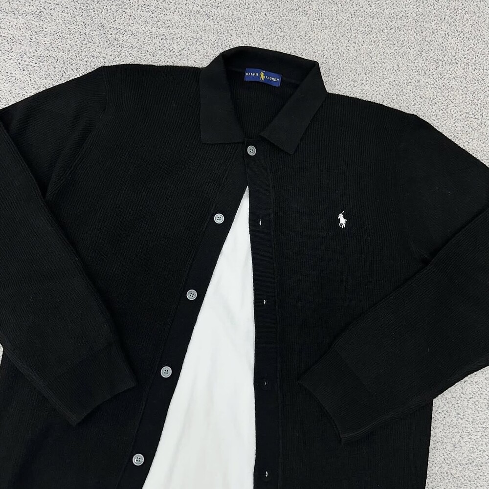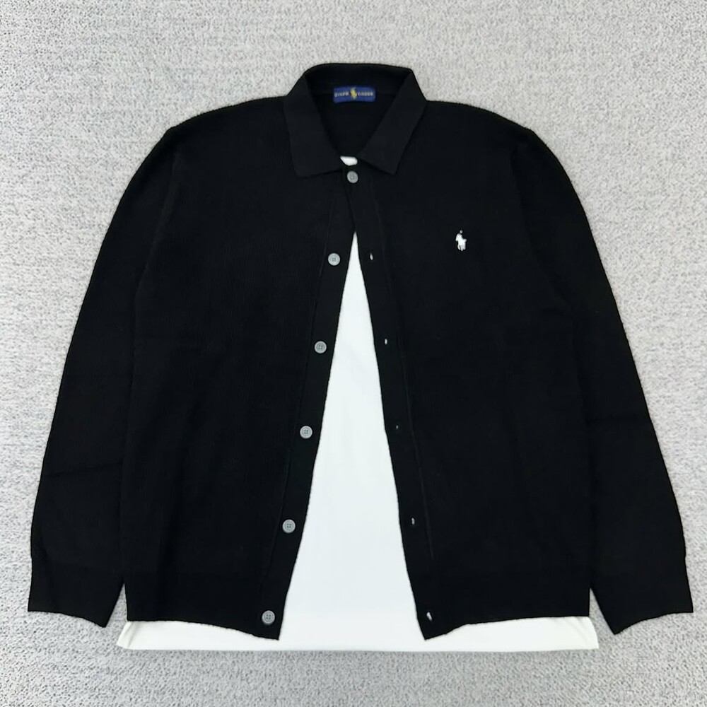 폴로 블랙 버튼 카라 가디건