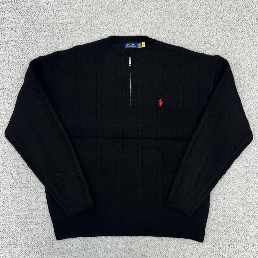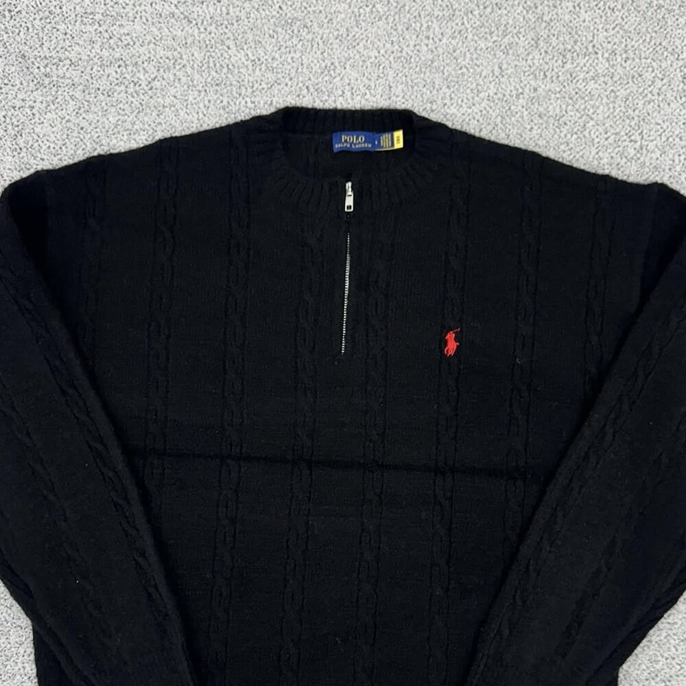 폴로 블랙 케이블 헤비라운드 반집업니트